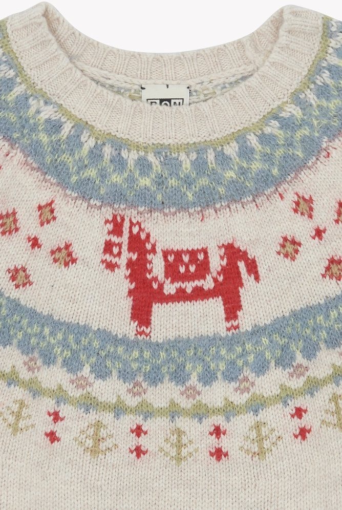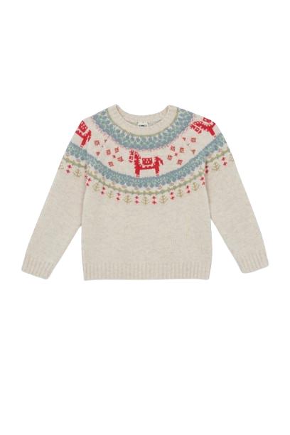 In lieflijk ecru en versierd met dierenpatronen, roept hij met elke draad het gevoel van "avontuur en natuur" op. Gemaakt van warme en comfortabele materialen, is deze trui perfect om de wereld stijlvol en warm te verkennen. Combineer hem met een jeans voor een ready-to-go look!