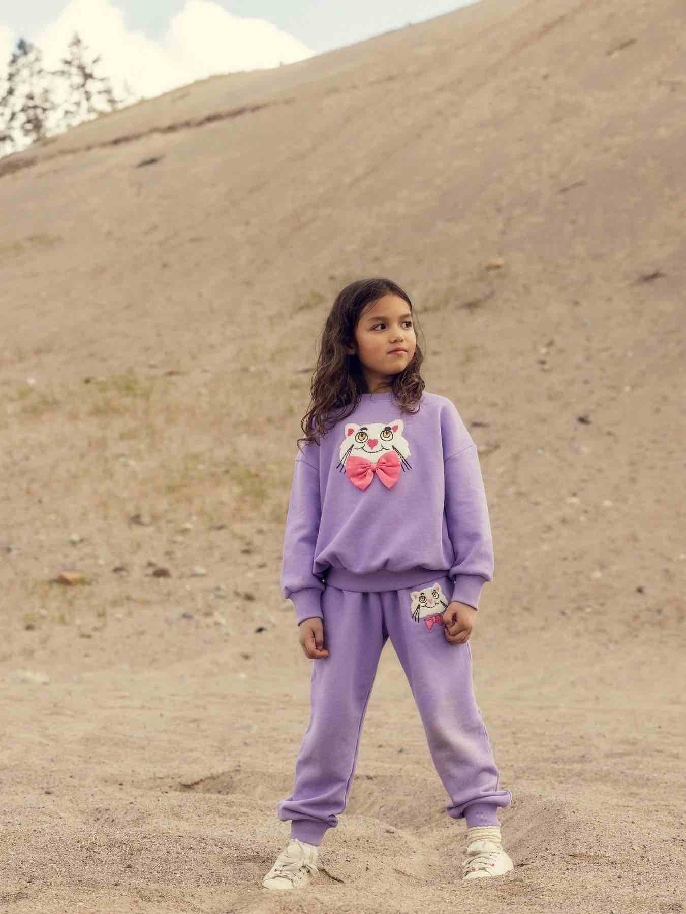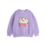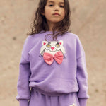 Mini Rodini Cat with Bowtie Chenille Sweatshirt Purple