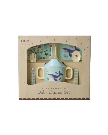 Rice Melamine Baby Dinner Set in Giftbox Blue Ocean Print