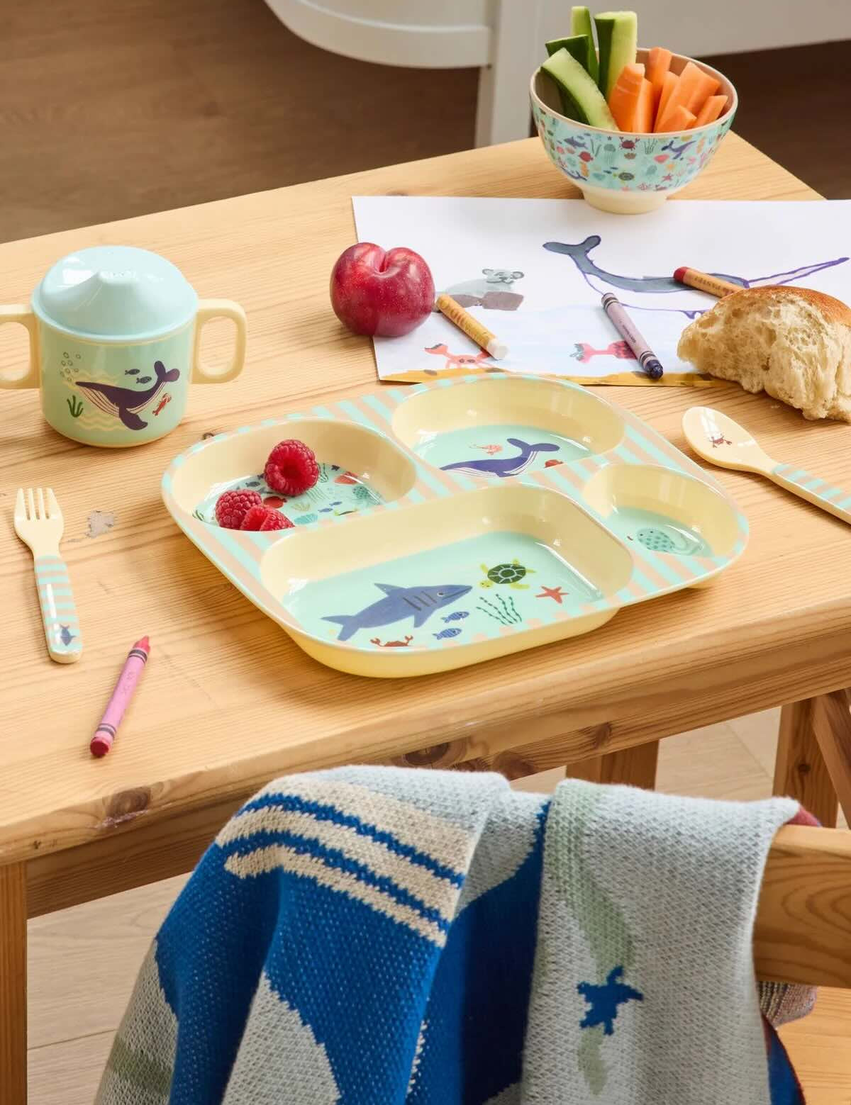 Rice Melamine Baby Dinner Set in Giftbox Coral Ocean Print