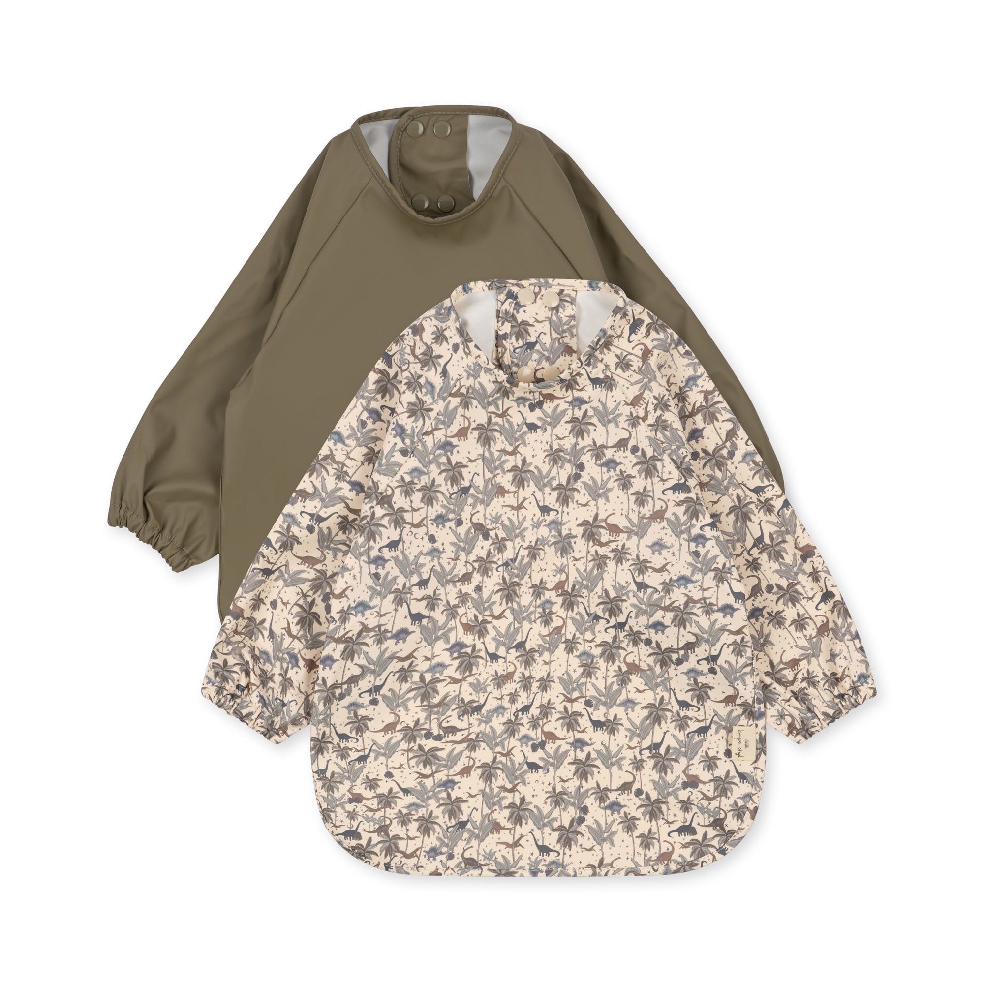 Ideale slabbetjes van Konges Sløjd om je kleintje schoon te houden tijdens het eten. De bibs hebben een leuke dinosaurus print.