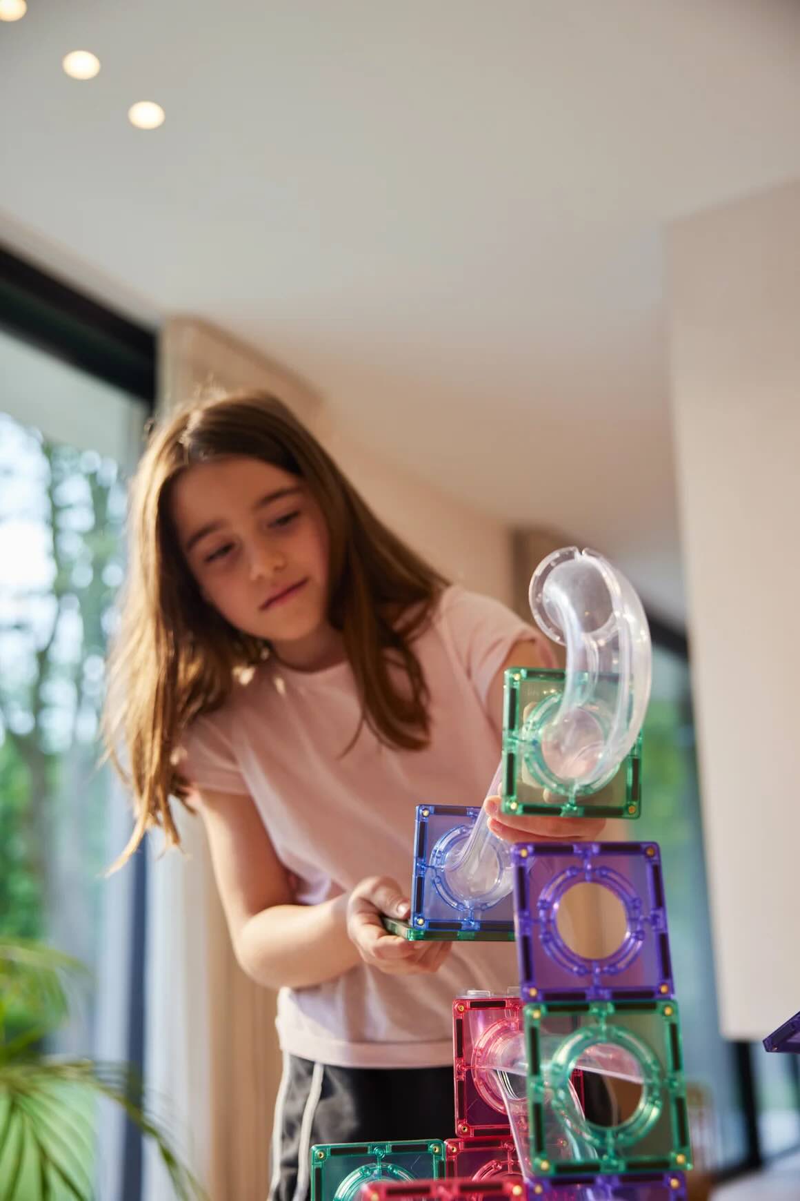 Deze Cleverclixx knikkerbaan in pastelkleuren bevat 70 stukjes. Met deze set kun je direct aan de slag met bouwen met de magnetische tegels. Magneten hebben iets magisch en spreken sowieso tot de verbeelding van kinderen. De creativiteit en fantasie van je kind krijgen alle ruimte om leuke constructies en ideeën te bedenken om mee te spelen met je favoriete Cleverclixx-set. Alle sets zijn onderling compatibel, dus je kunt ze altijd uitbreiden. Cleverclixx groeit ook met je kinderen mee.