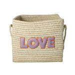 Super leuke mand van Rice met het woord 'love' (liefde) in paars met oranje letters erop – een echte klassieker! De afmetingen van de mand zijn L30 x B30 x H25 cm wat perfect is voor het opbergen van alledaagse spulletjes ... frutsels, sjaals, boeken of misschien zelfs wat speelgoed.