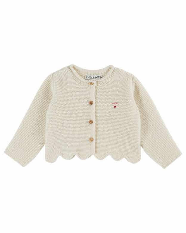 Emile et Ida Cardigan Point Mousse BB Ecru