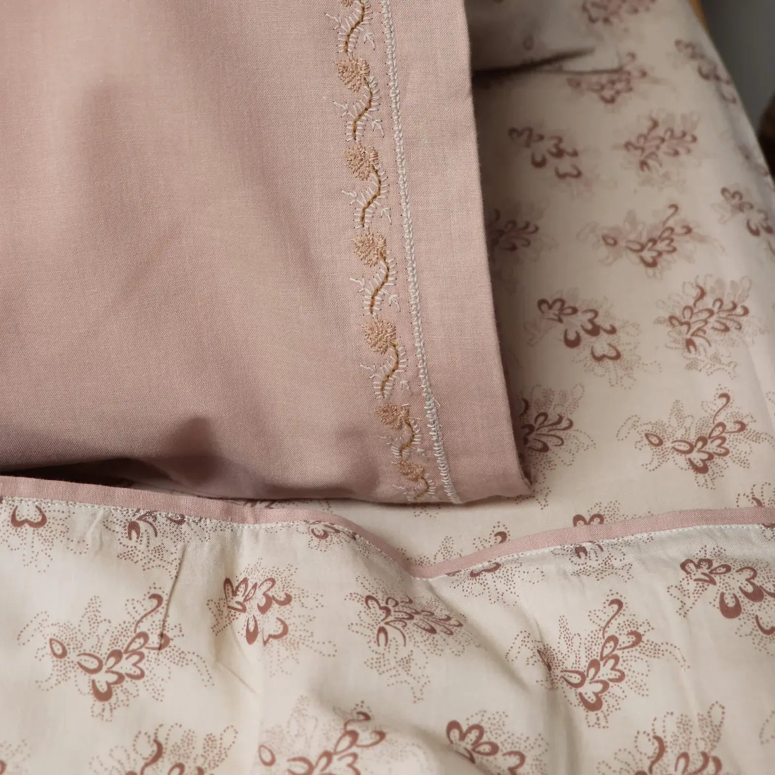Camomile London Pillowcase Leaf Emb Light Mink Small (60x40)