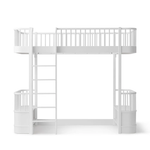 Oliver Furniture - Houten Hoogslaper 041430 Wit 90x200 cm. De Wood hoogslaper is met zijn unieke design uniek in zijn soort op het gebied van kinderbedden. Het is het perfecte bed voor het oudere kind. Voorin het bed is een ruimtebesparende ladder geplaatst en daaronder zijn kleine bankjes met planken geplaatst. De hoogslaper kan worden aangevuld met een vloerkussen en een kleine tafel.