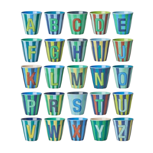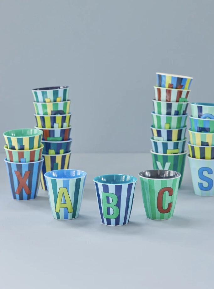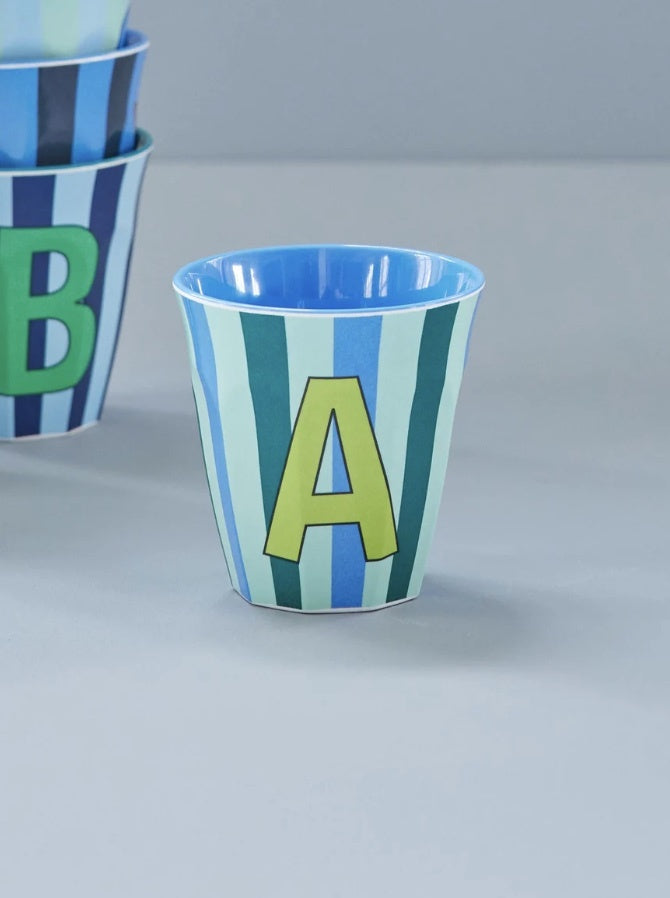 Rice Gestreepte Alfabet Letter Beker Melamine Blauw