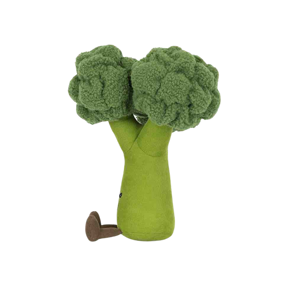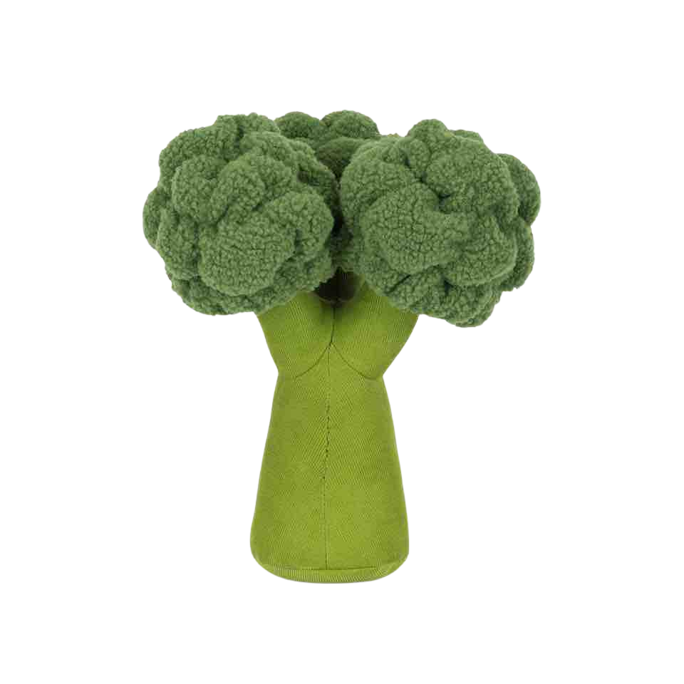 Jellycat knuffel in de vorm van een groene broccoli met een speels en vriendelijk uiterlijk.