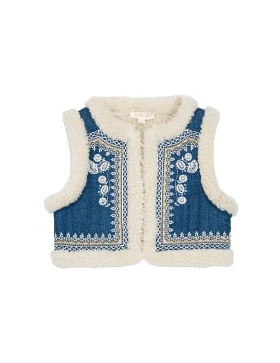 Louise Misha Reversible Vest Librana Stone Blue - Cream