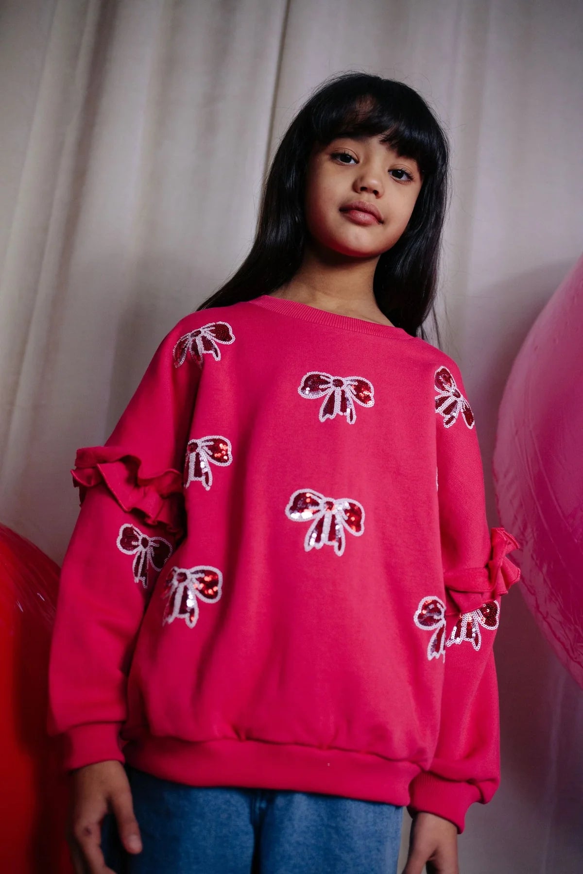 Daily Brat Shimmer Bow Sweater Love Potion