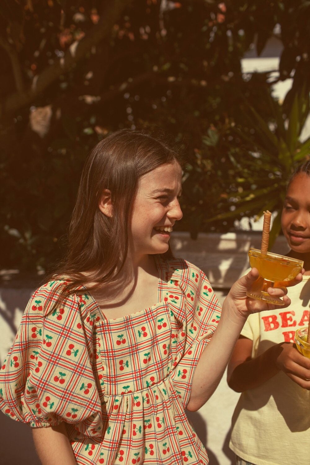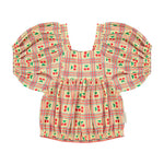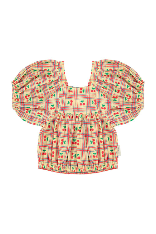 Piupiuchick Cropped Blouse Baloon Sleeves Light Yellow Cherries Allover