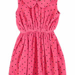 Piupiuchick Short Dress with Collar | Pink with Black Hearts
