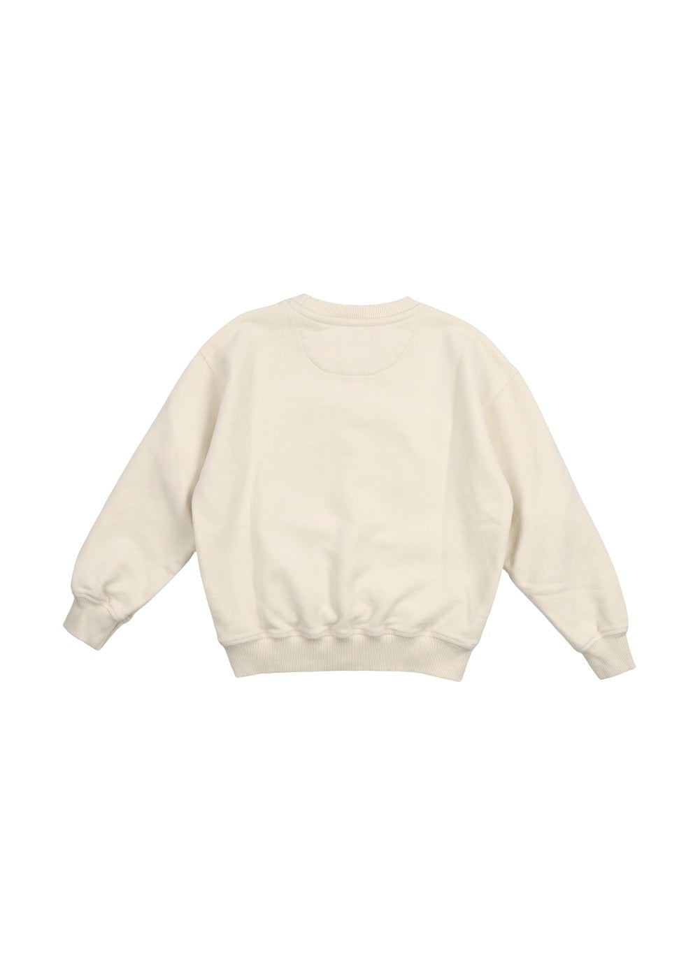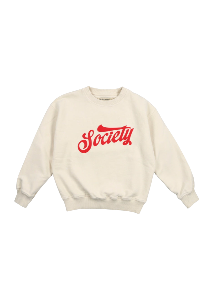 Comfortabele ecru sweater met rood Society op de borst van The New Society.