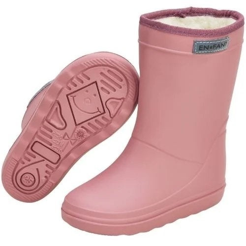 De En Fant thermo boots old rose zijn waterdicht en gemaakt van rubber met zolen die getest zijn op goede grip op een natte & gladde ondergrond. De winterlaarsjes zijn heel flexibel en barsten daardoor niet. De En Fant regenlaarsjes zijn met wol gevoerd waardoor de voetjes van je kind heerlijk warm bliven en vallen daarom kleiner. Wij raden aan om een maat groter te bestellen. Door de smalle pasvorm is dit merk minder geschikt voor kinderen met een hoge wreef of brede voet.