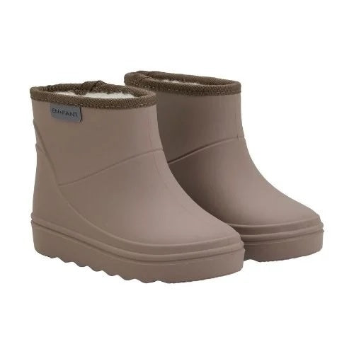 De En Fant thermo boots short pine bark zijn waterdicht en gemaakt van rubber met zolen die getest zijn op goede grip op een natte & gladde ondergrond. De winterlaarsjes zijn heel flexibel en barsten daardoor niet. De En Fant regenlaarsjes zijn met wol gevoerd waardoor de voetjes van je kind heerlijk warm bliven en vallen daarom kleiner. Wij raden aan om een maat groter te bestellen. Door de smalle pasvorm is dit merk minder geschikt voor kinderen met een hoge wreef of brede voet.