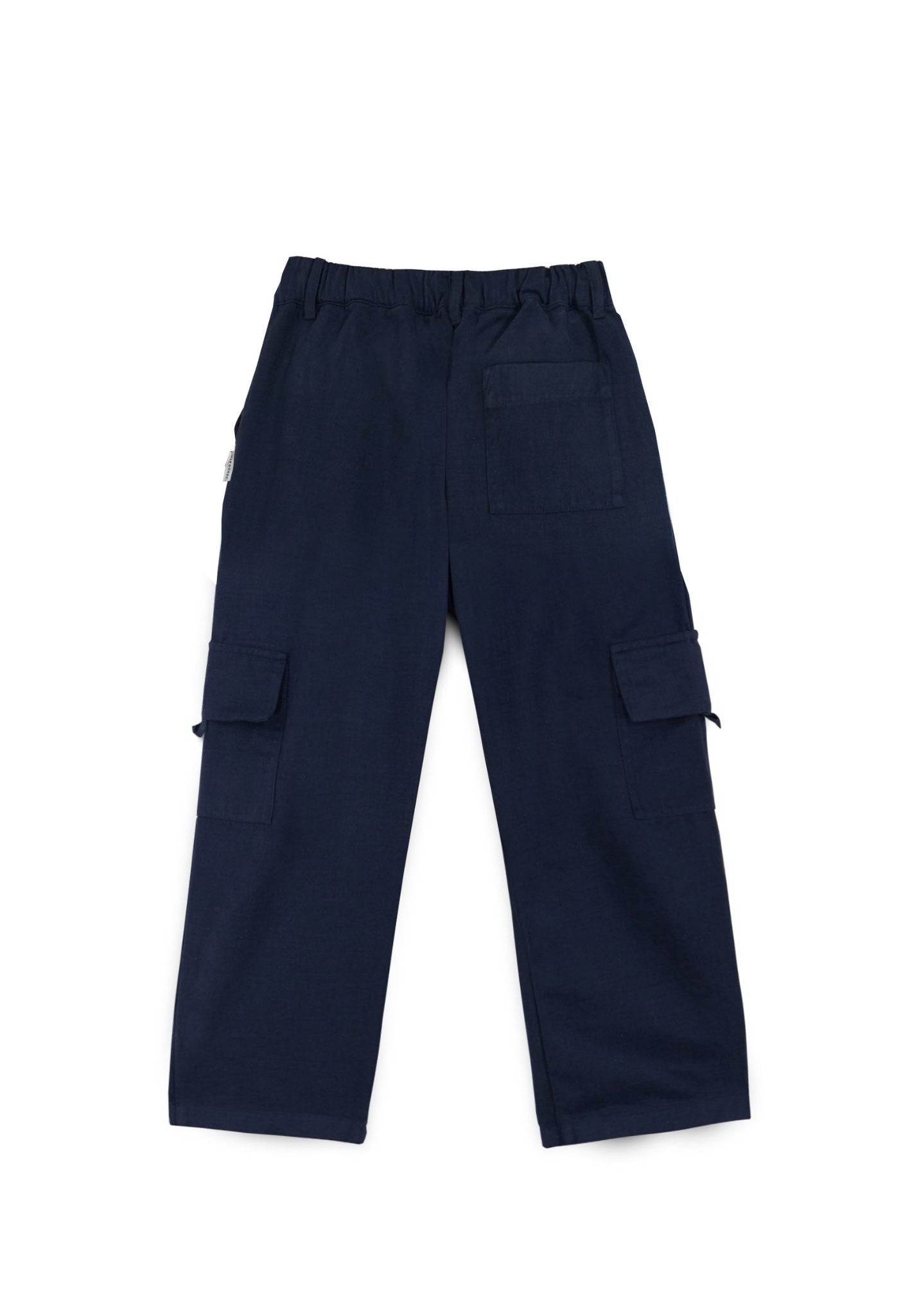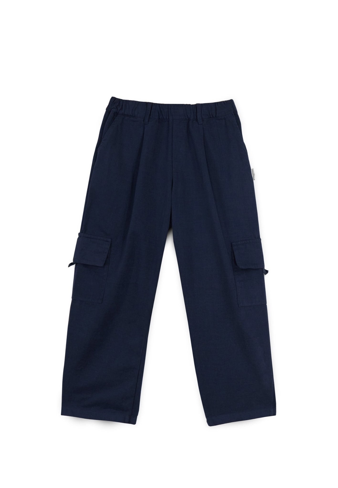 Cargobroek, ontworpen om bij elke garderobe te passen. Deze relaxte stijl is gemaakt van zacht katoen en heeft twee ruime cargozakken en een comfortabele elastische tailleband.