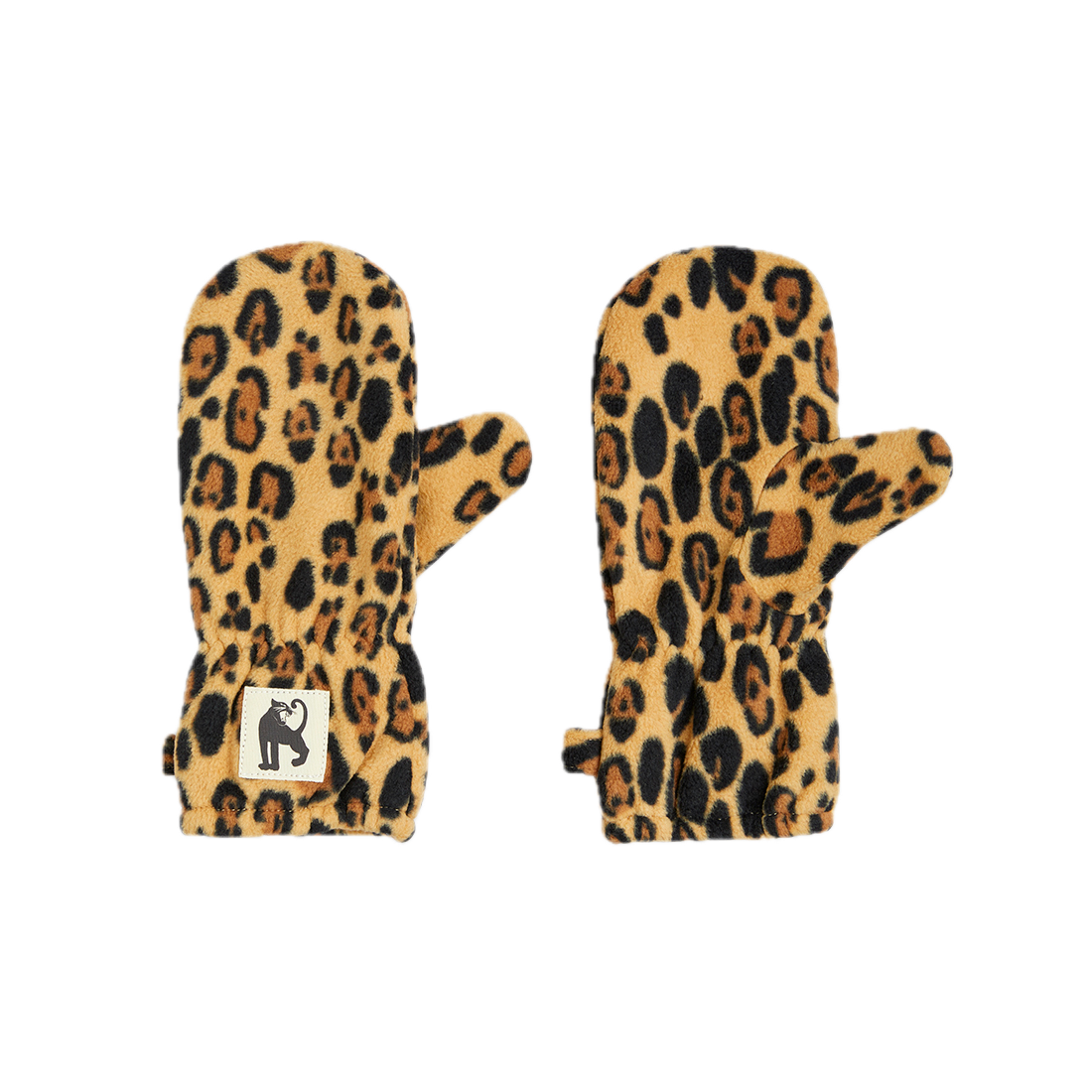 Mini Rodini Basic Leopard Fleece Mittens Beige