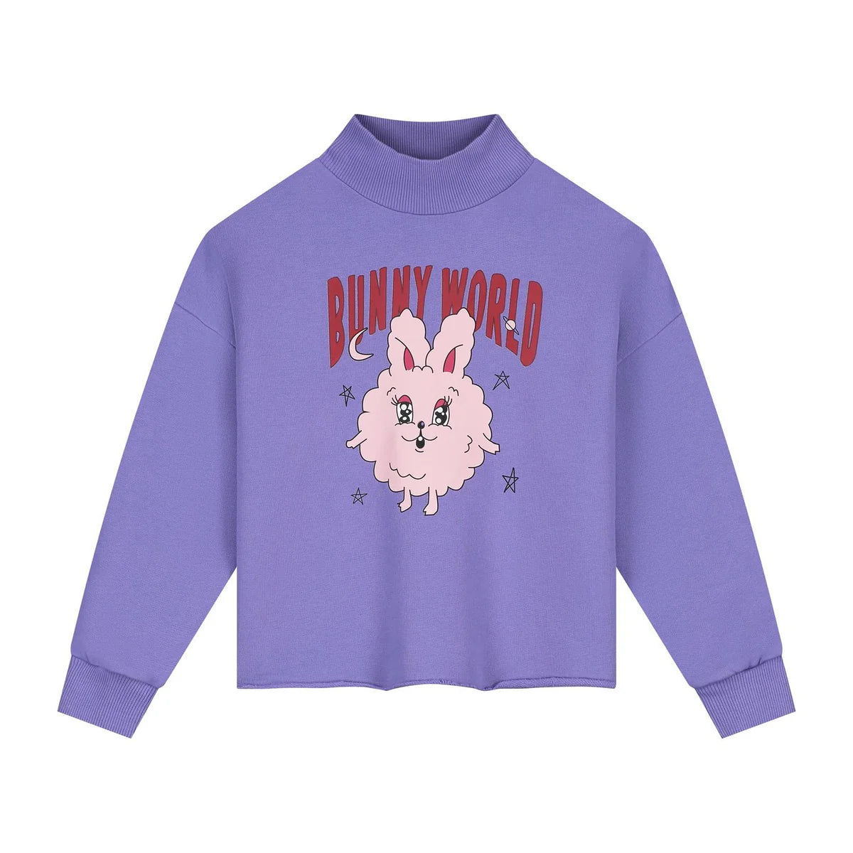 Call Me Frankie CMF Cropped Bunny World Sweater Purple