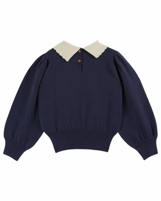 Emile et Ida Pullover Col Pierrot Marine