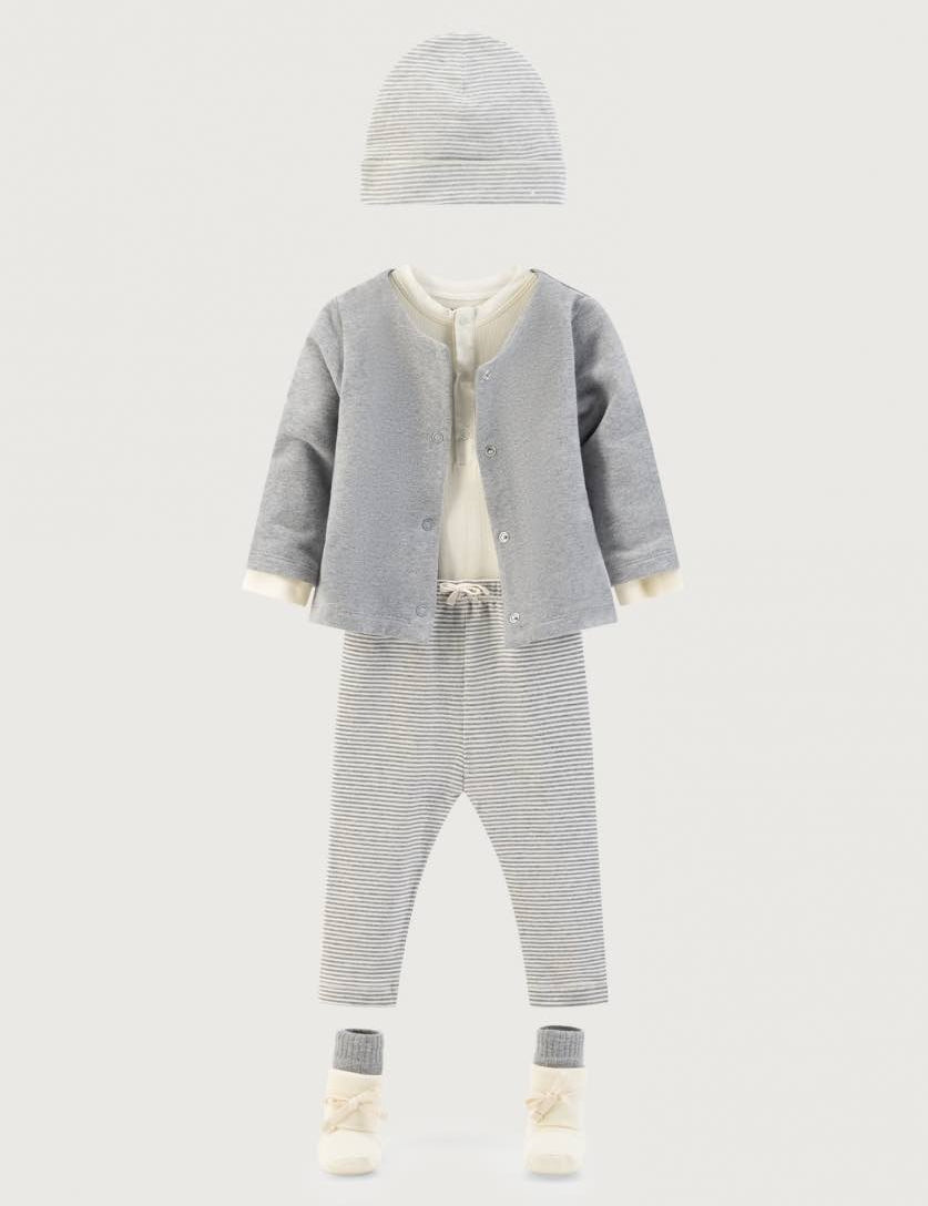 Gray Label Baby L/S Onesie Grey Melange - Cream