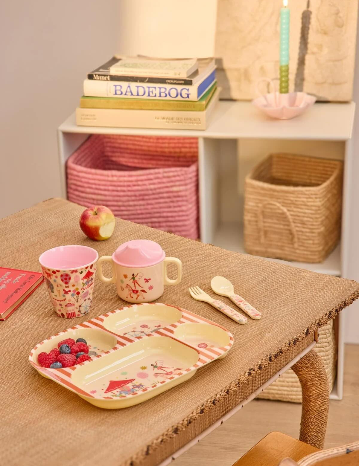 Rice Melamine Baby Dinner Set in Giftbox Fun Fair Print Pink