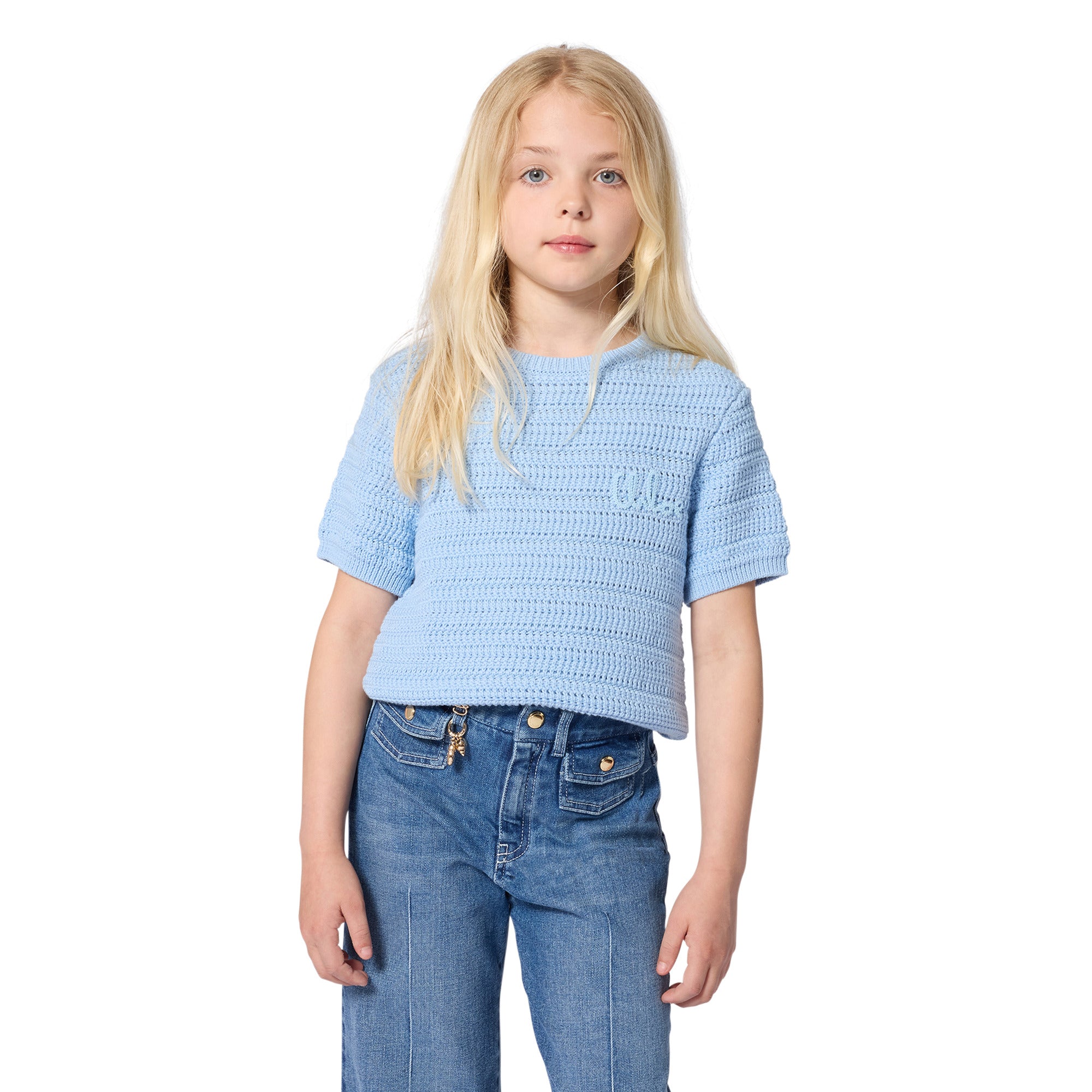 Spijkerbroek van Chloe met 2 voorzakken met knoopjes en een schattig bedeldetail