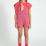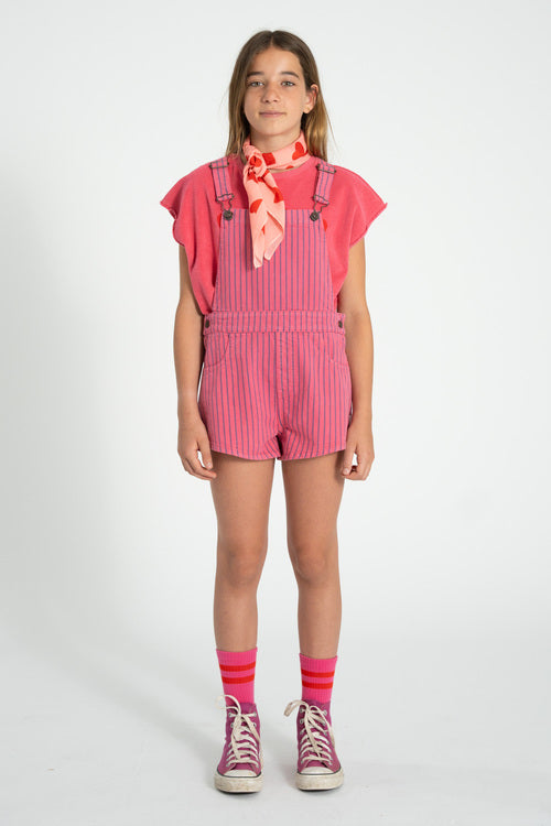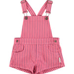 Piupiuchick Short Dungarees | Pink With Indigo Stripes
