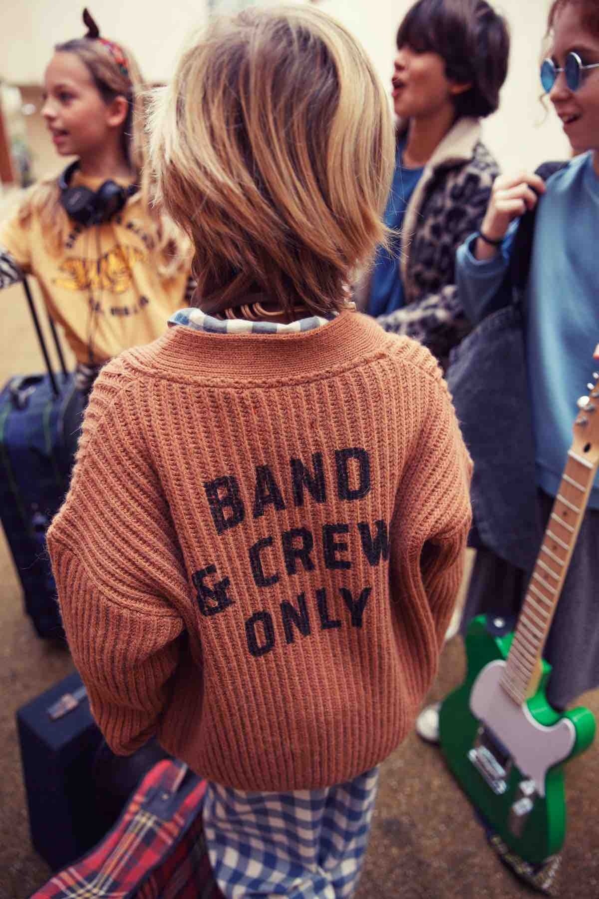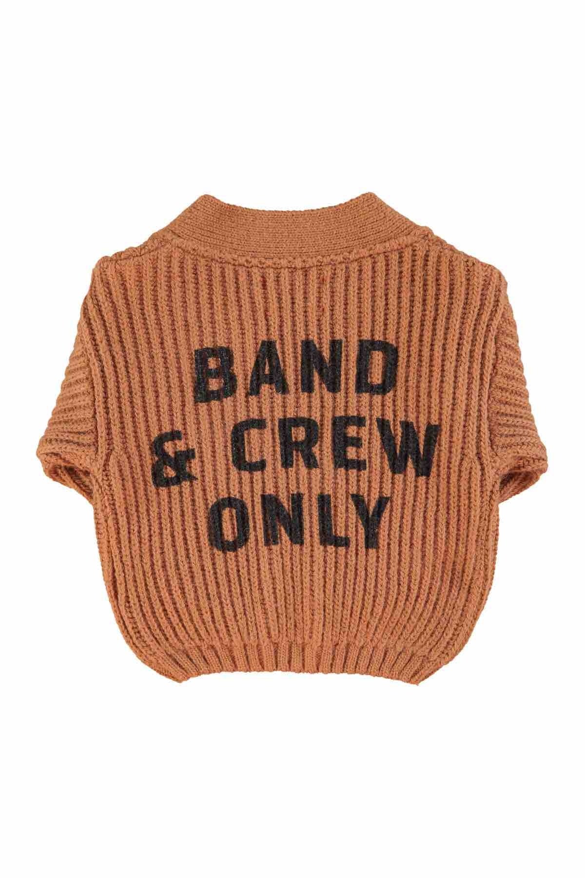 Piupiuchick Knitted Cardigan Brown w/ "Band & Crew Only" Print