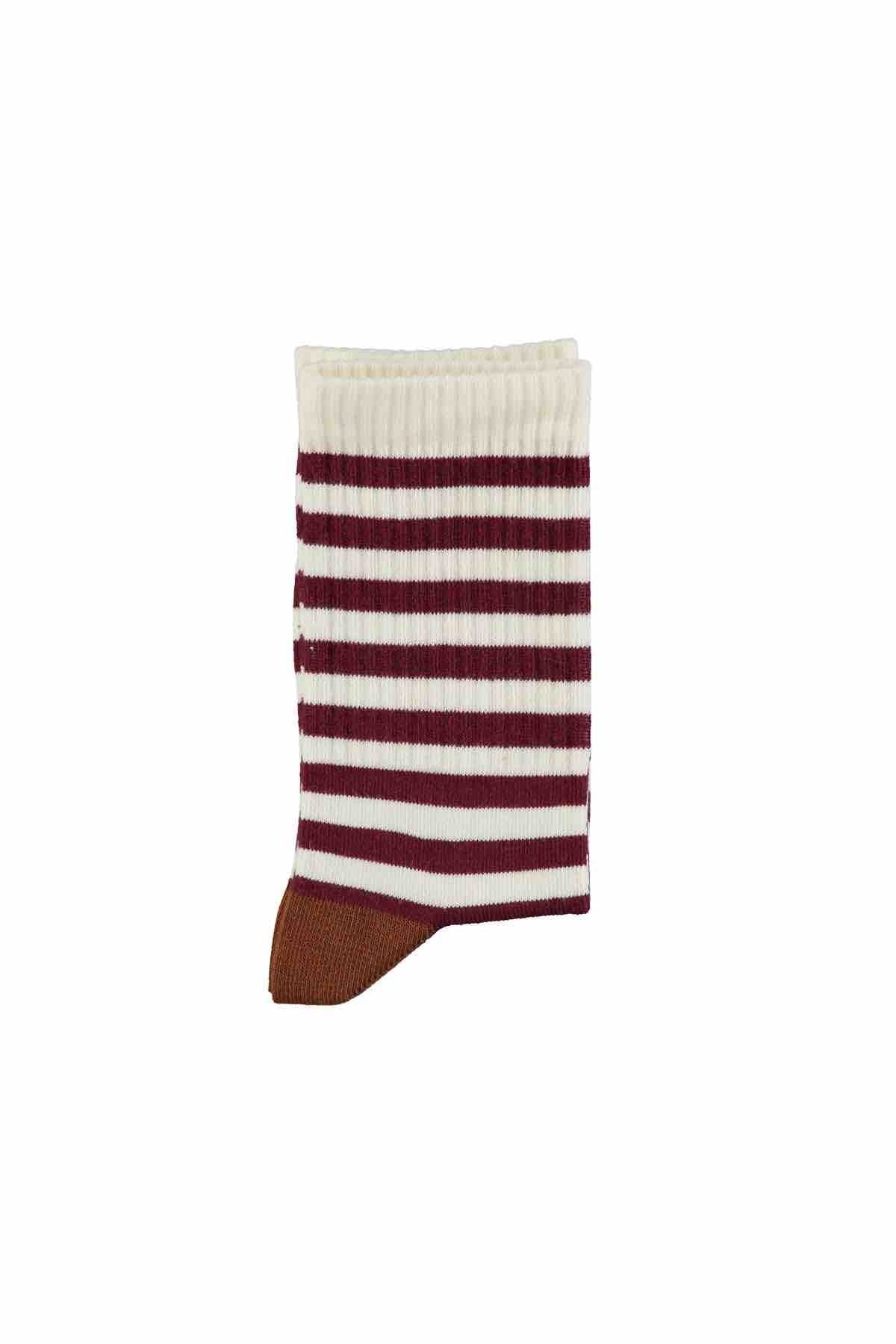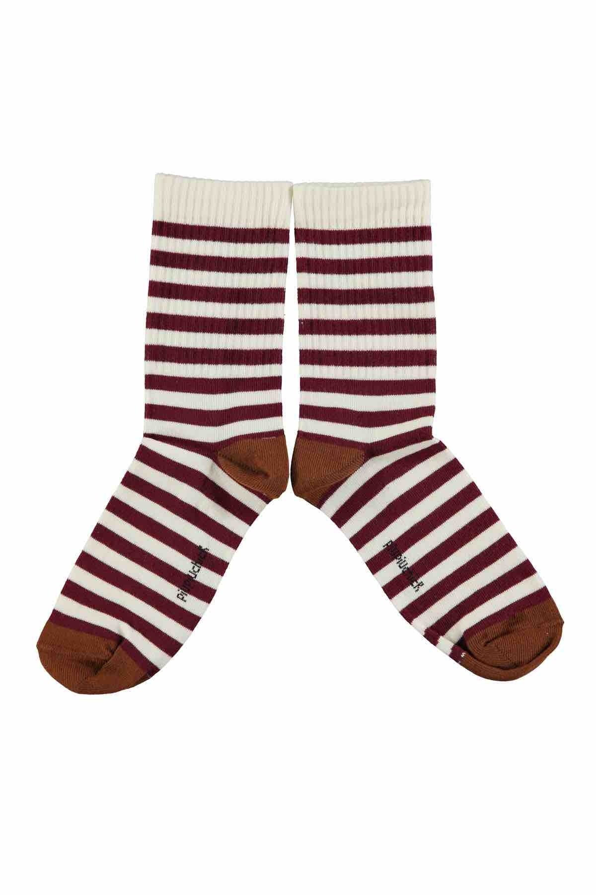 Piupiuchick Socks Ecru & Bordeaux Stripes