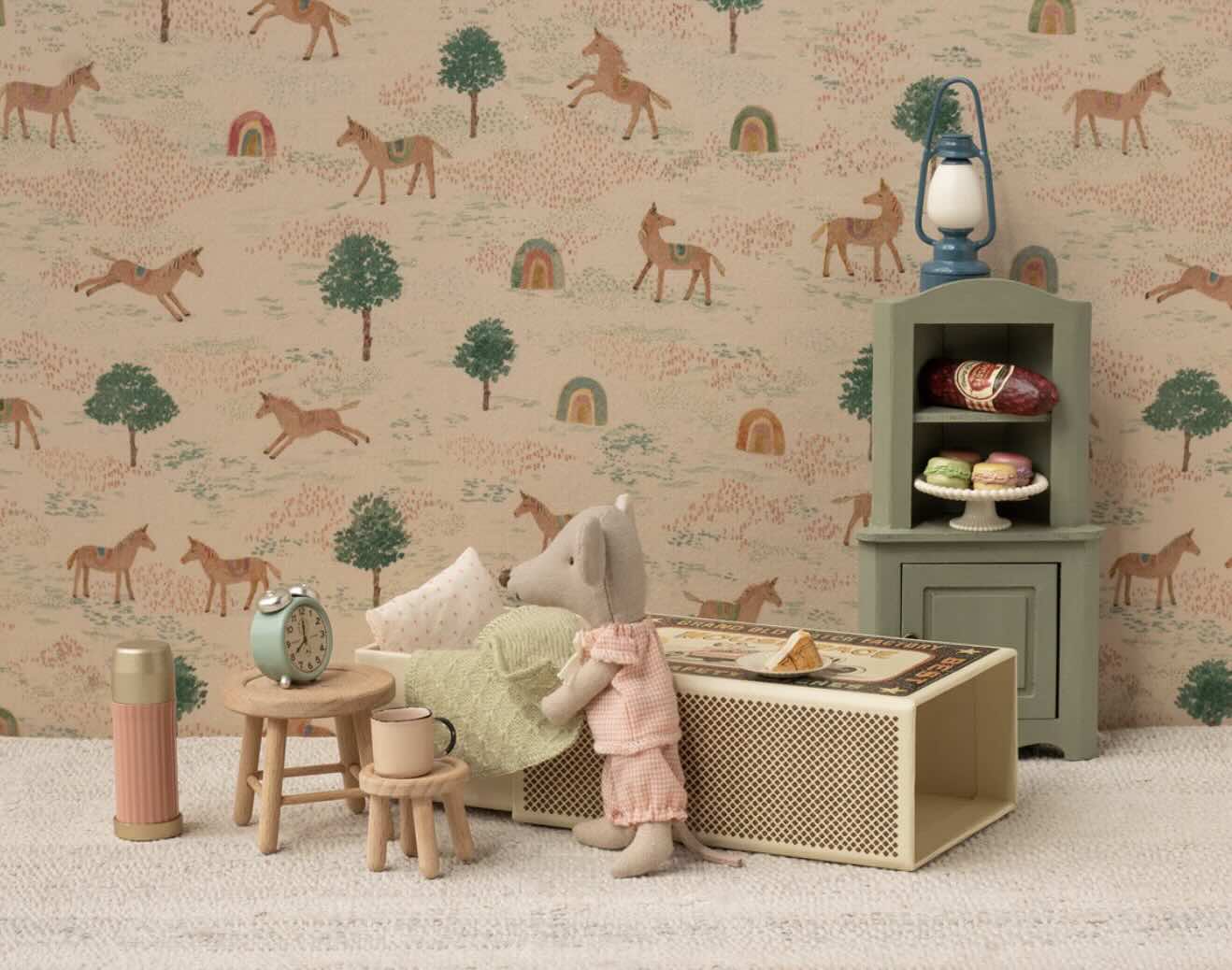 Een klassiek Maileg-item: deze muis is klaar voor urenlang speelplezier en slaapt heerlijk in zijn luciferdoosje. De kleding en het beddengoed zijn gemaakt van zachte stoffen met unieke prints in prachtige kleuren. De muis heeft magneten in zijn handen.