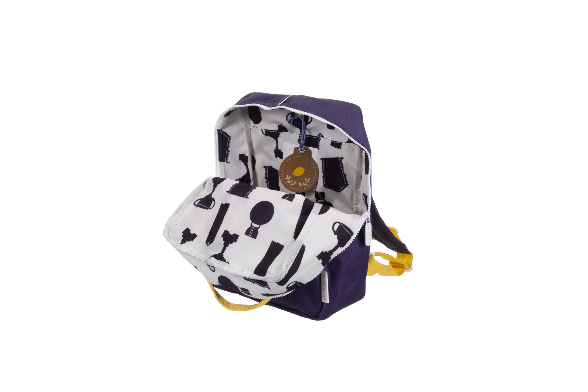 Schrijf je naam en contactgegevens op het naamplaatje dat bij de tas wordt geleverd, zodat je er zeker van kunt zijn dat deze veilig thuiskomt als je hem kwijt bent. En nog een handig detail: de rugzak heeft een elastische band aan de binnenkant, zodat je flesjes en bekers goed op hun plek blijven zitten.