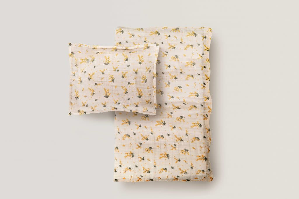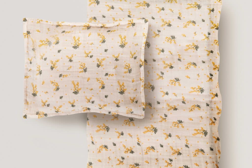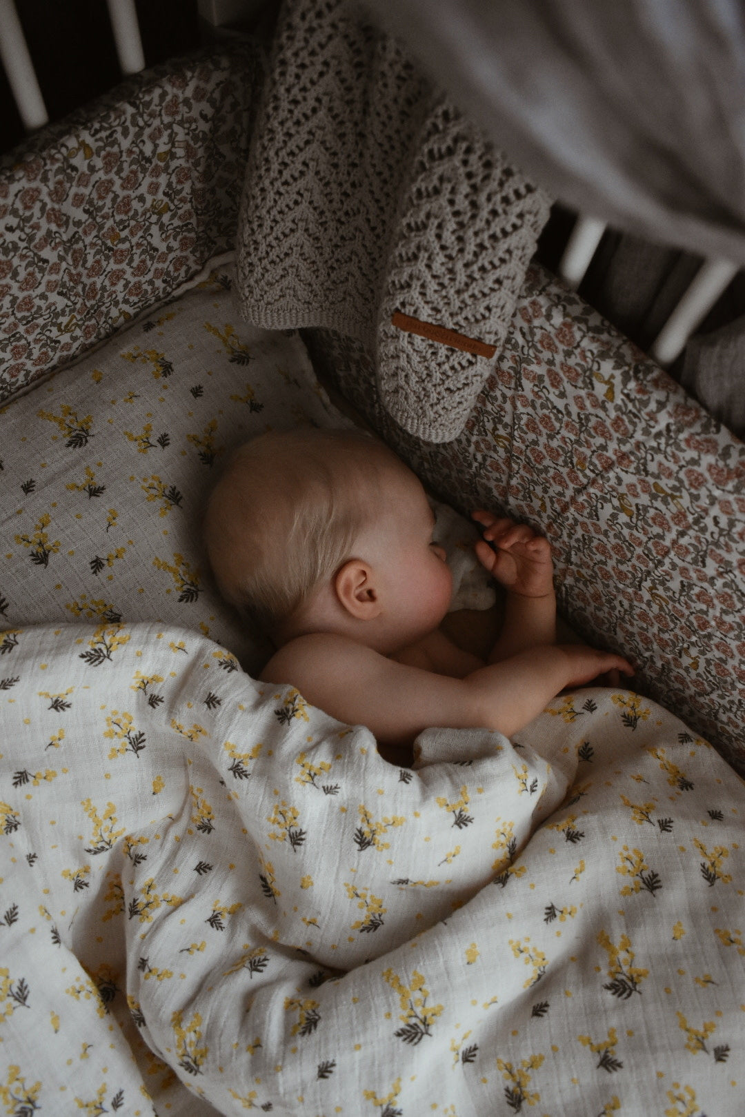 Mousseline is een heerlijk zacht materiaal met een prachtige textuur dat meestal wordt gebruikt voor swaddles. Perfect als beddengoed aangezien het materiaal zachter en zachter wordt bij elke wasbeurt.