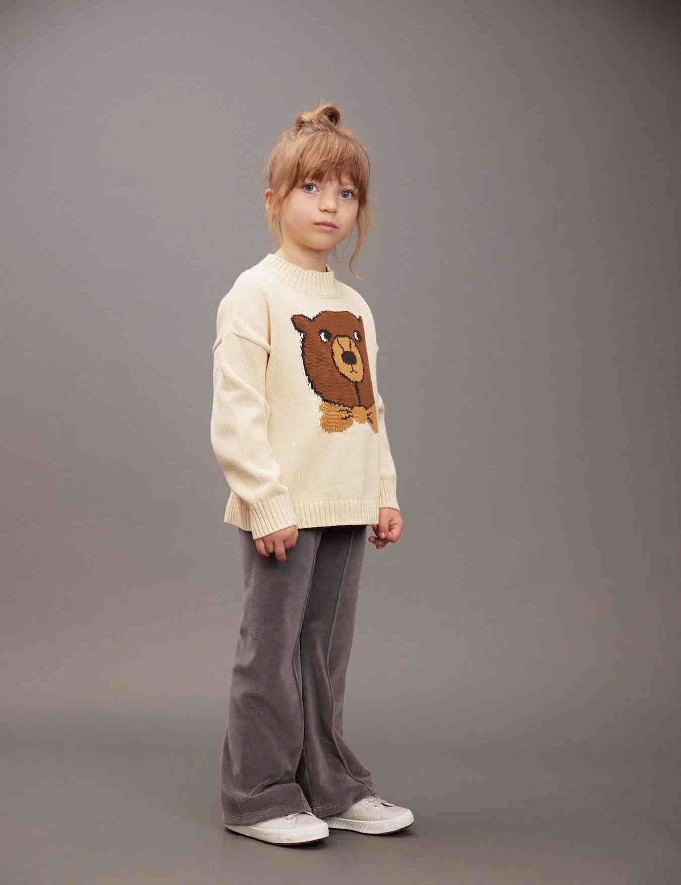 Mini Rodini Bear Intarsia Knit Sweater Off-White