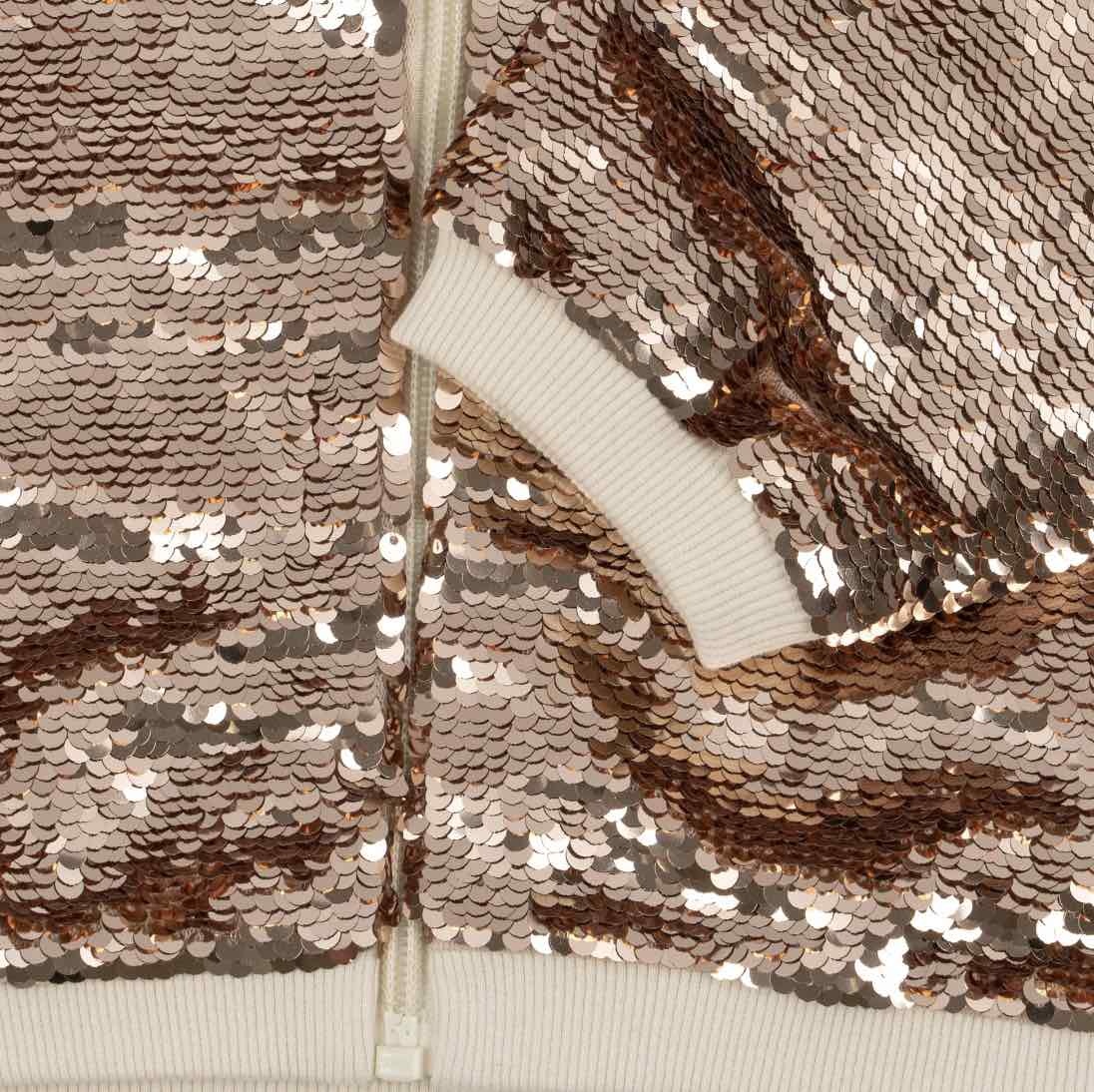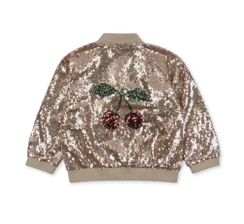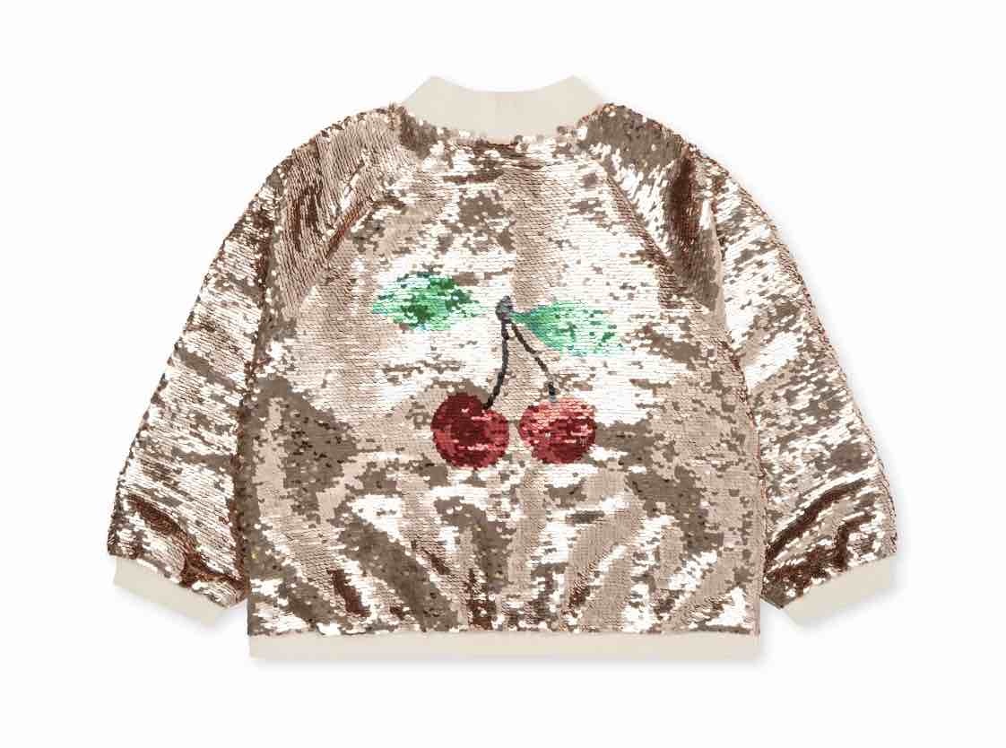 Het Lulu bomberjack met kersjesprint op de rug is een echte blikvanger, in een klassieke stijl en helemaal versierd met opgeborduurde, fonkelende pailletten. Met geribde kraag, zomen en een ritssluiting. Gemaakt van 100% polyester