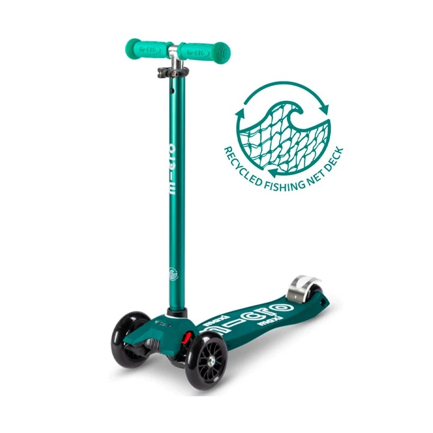 De bekroonde Maxi Micro Deluxe step met LED-wielen (5-12 jaar) biedt dezelfde intuïtieve en geliefde 'lean-to-steer' systeem als de Mini Micro, waarvan Micro Mobility de uitvinder is. Het grotere en robuuste frame van de kinderstep is speciaal ontworpen voor oudere en sterkere kinderen. Alle Micro-producten zijn vriendelijk voor de planeet, handig qua ruimte, en perfect voor korte ritten.