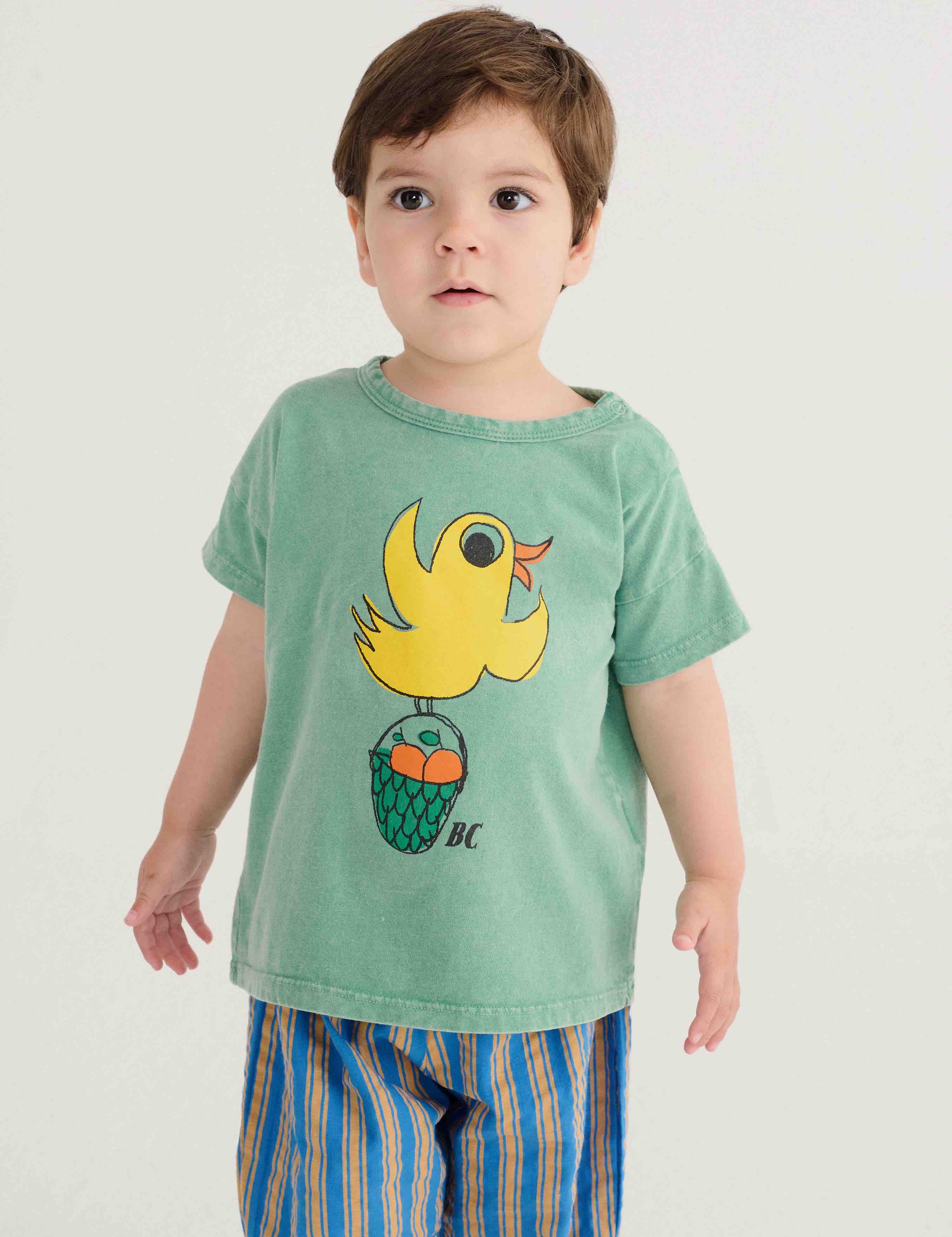 Bobo kiest voor een T-shirt met vliegende sinaasappels