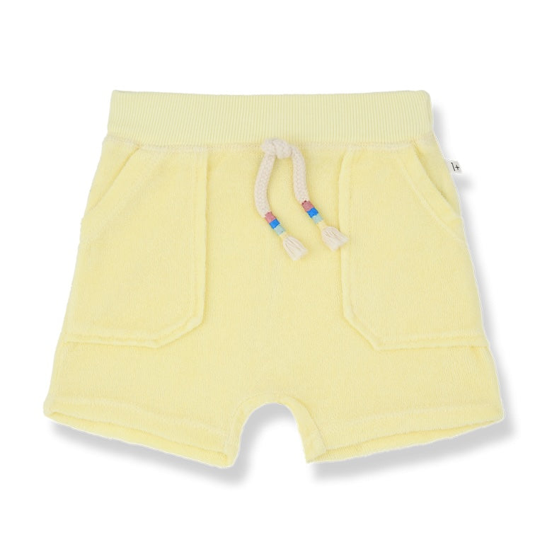 Zacht shortje met trekkoord Buger in een frisse citroengele kleur van One More in the Family.