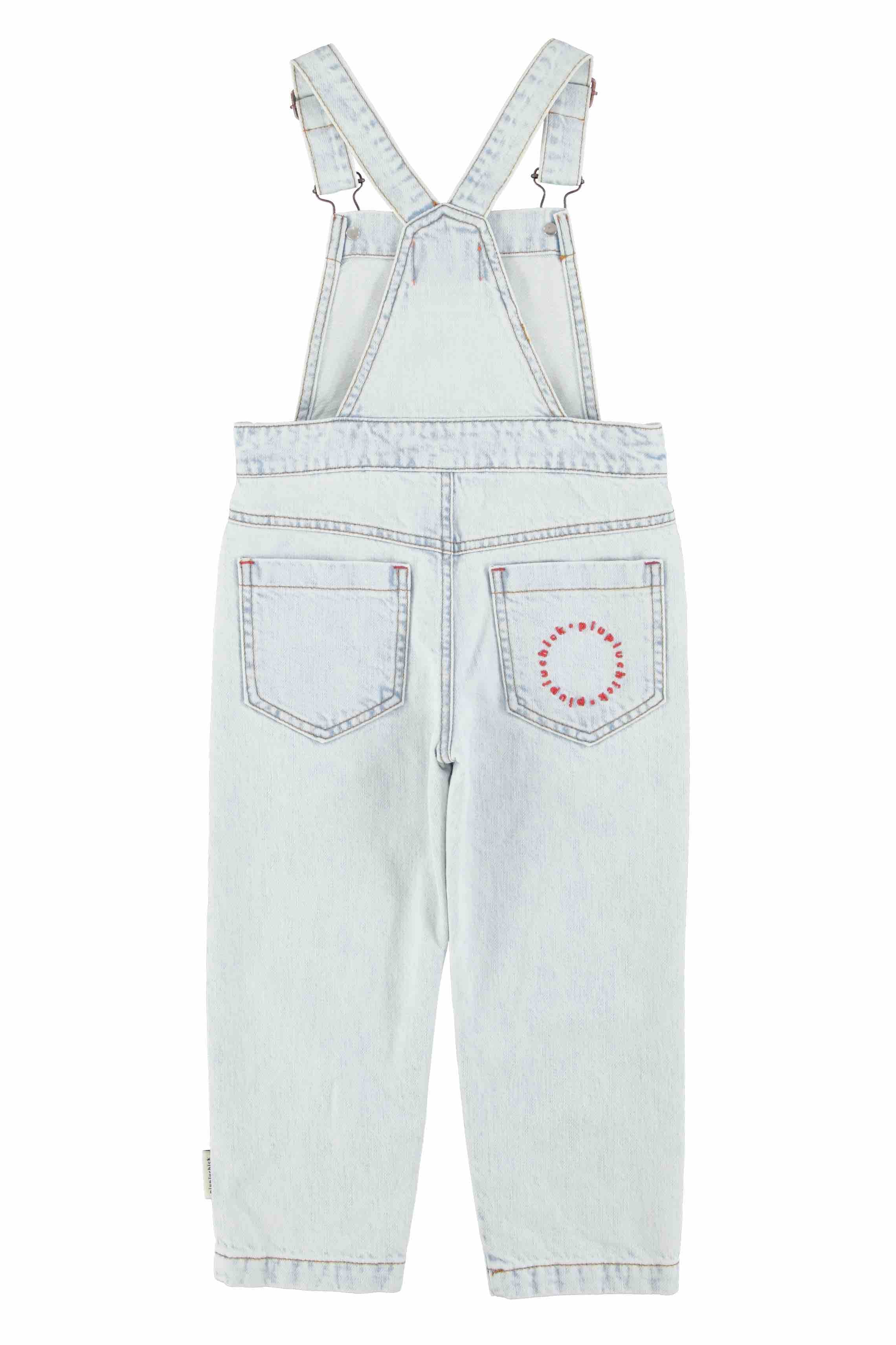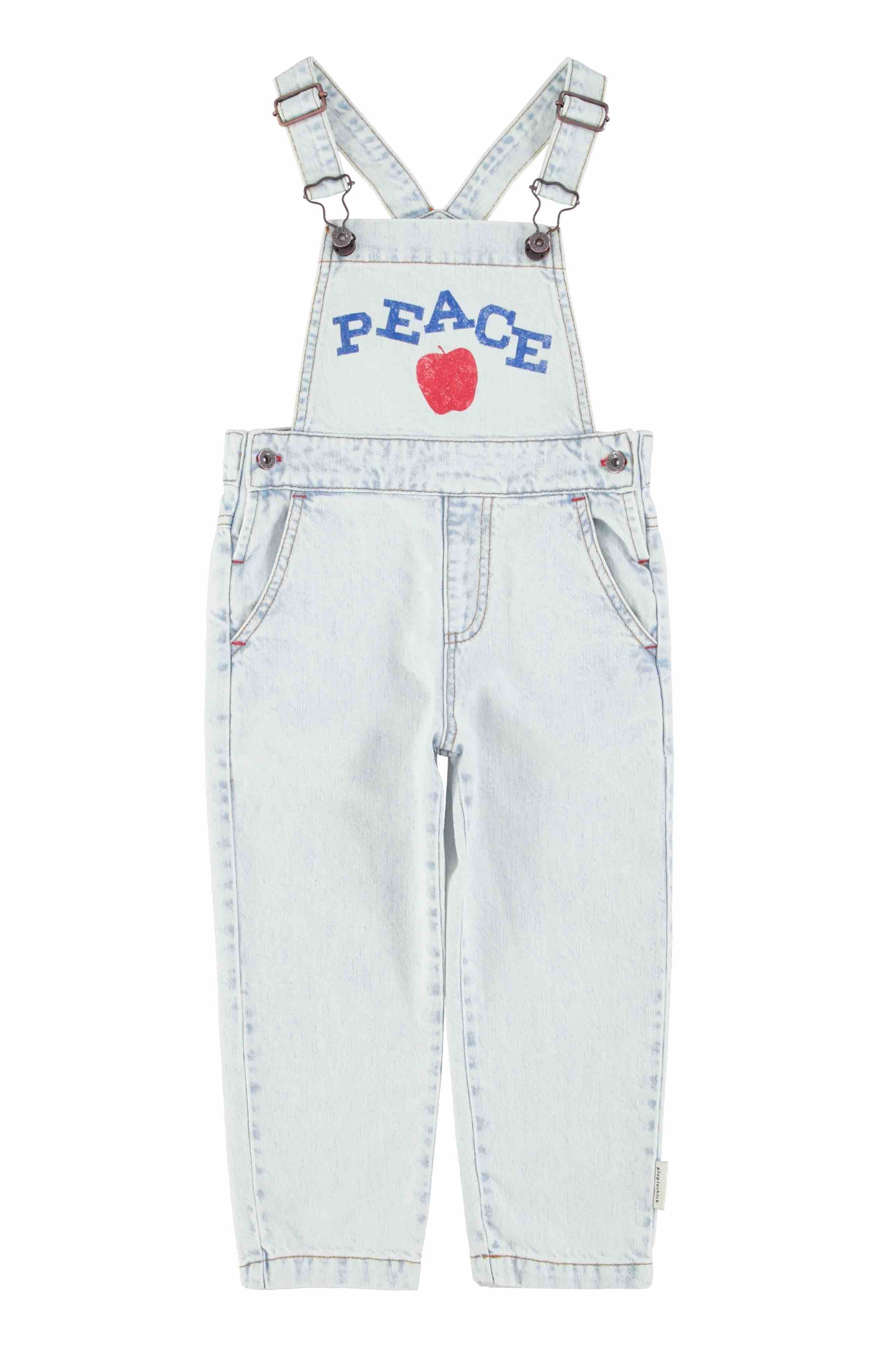 "Peace" tuinpak in lichte kleur jeans, verstelbare banden en knopen aan de zijkant van Piupiuchick.