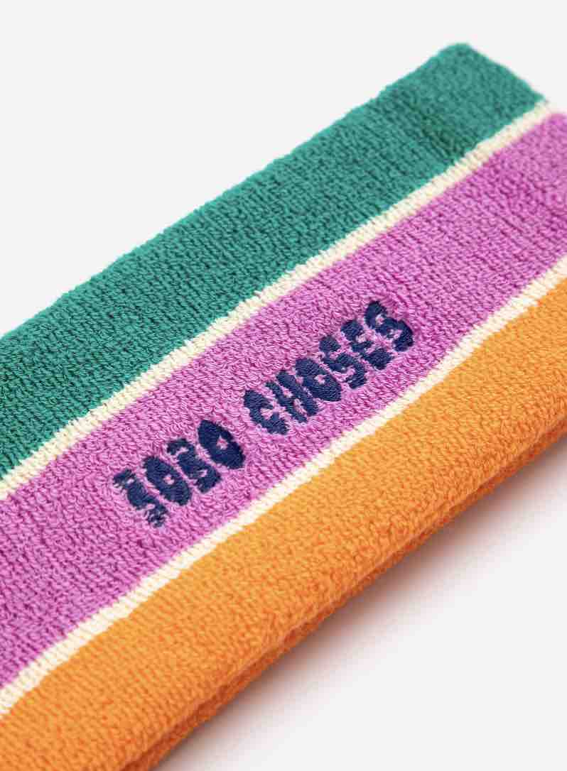 Bobo kiest voor een gestreepte badstof hoofdband.