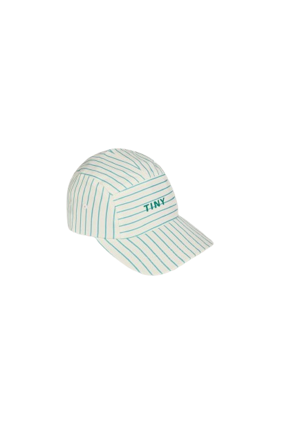 Tiny Cottons pet met fijne strepen in cyaanblauw