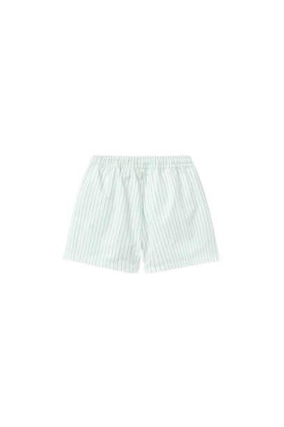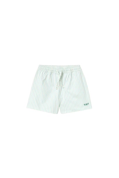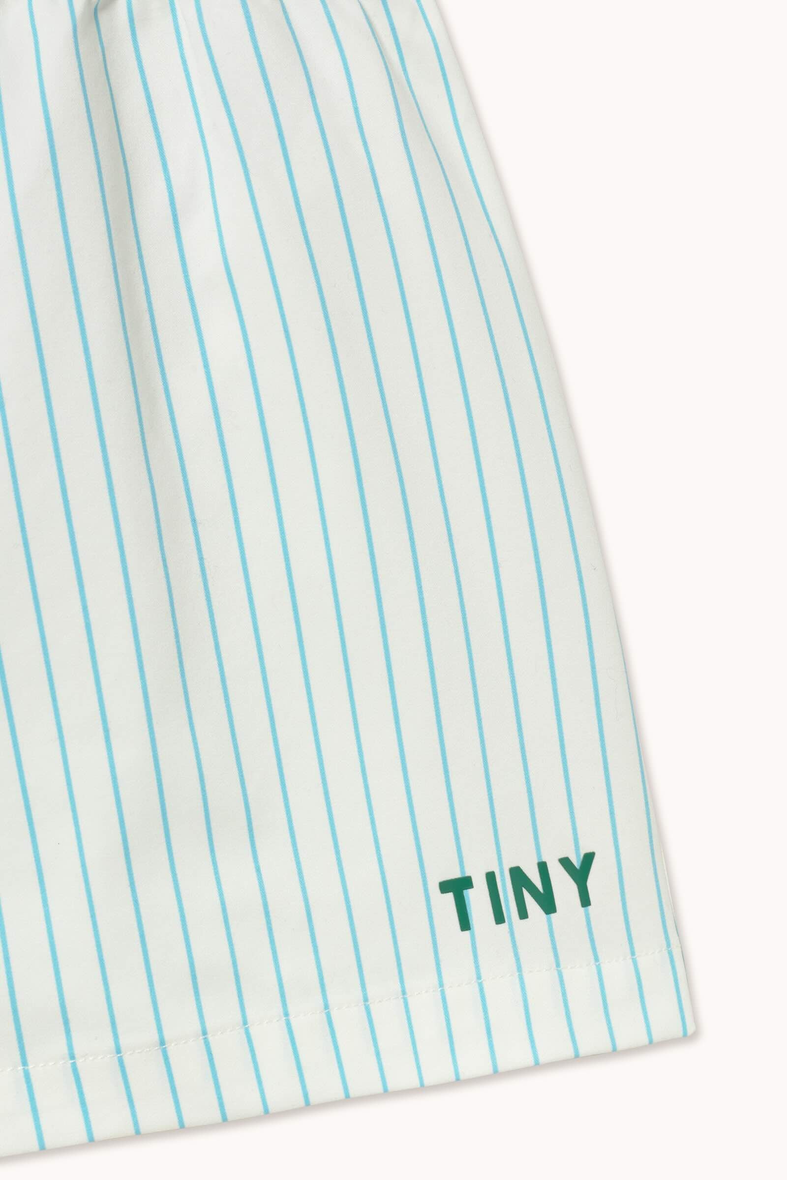 Kleine katoenen zwembroekjes met fijne strepen in cyaanblauw.