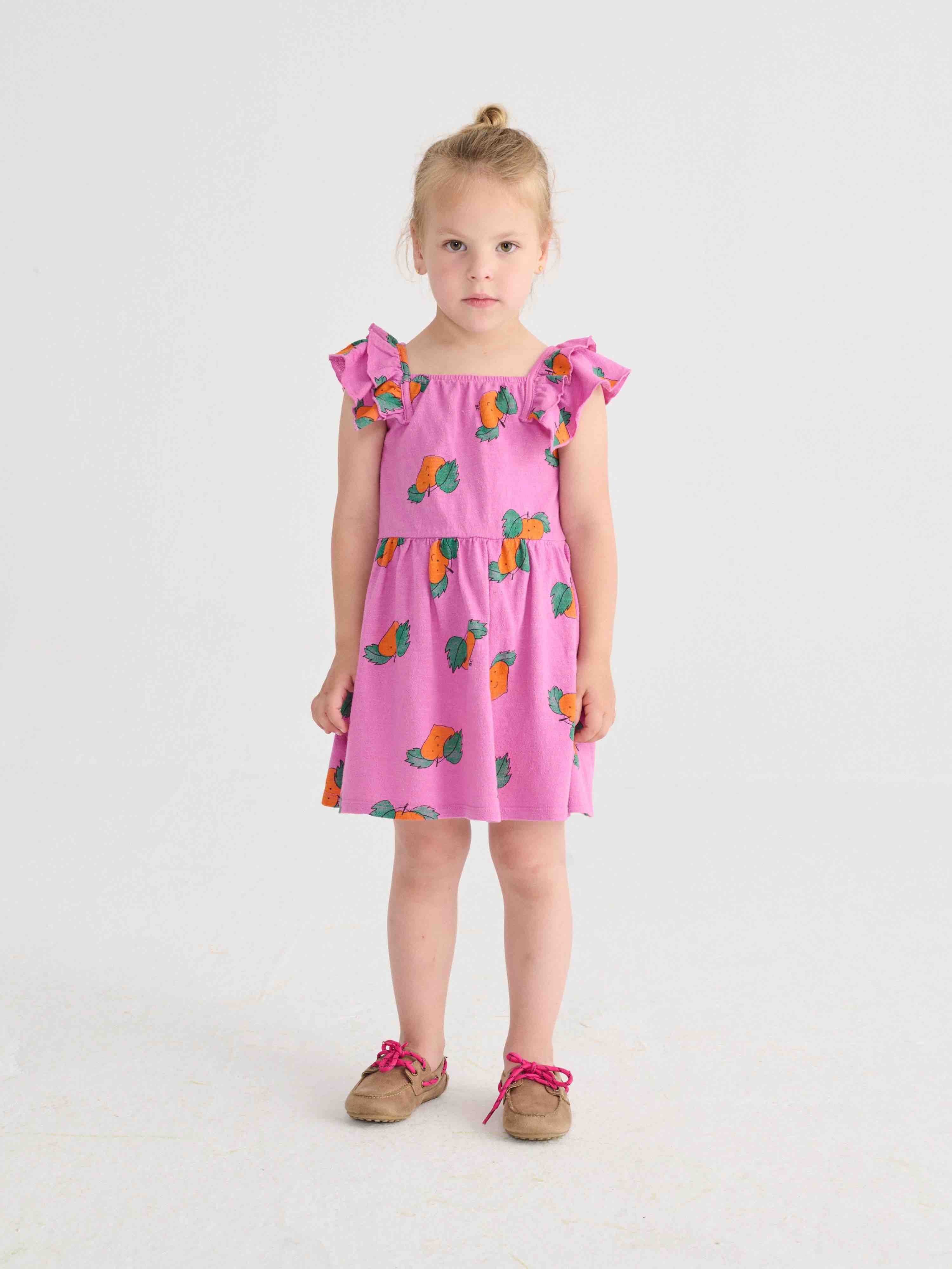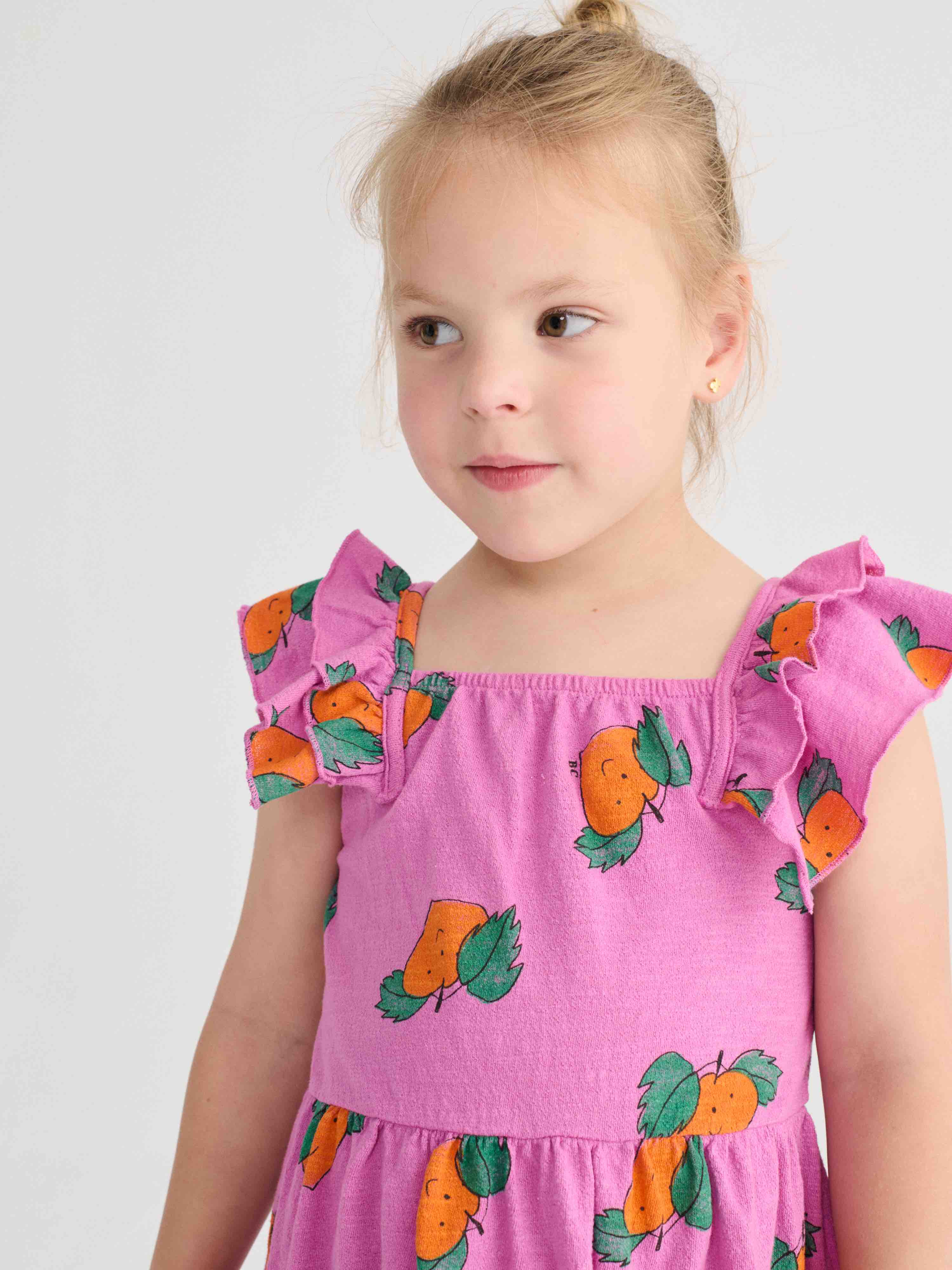 Bobo kiest voor een volledig oranje jurk met ruches.