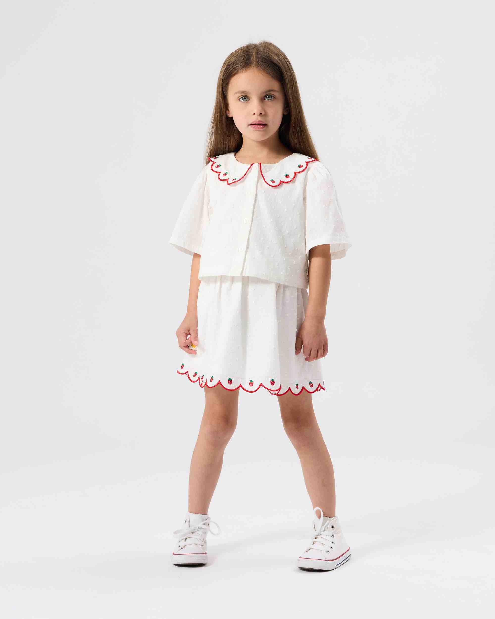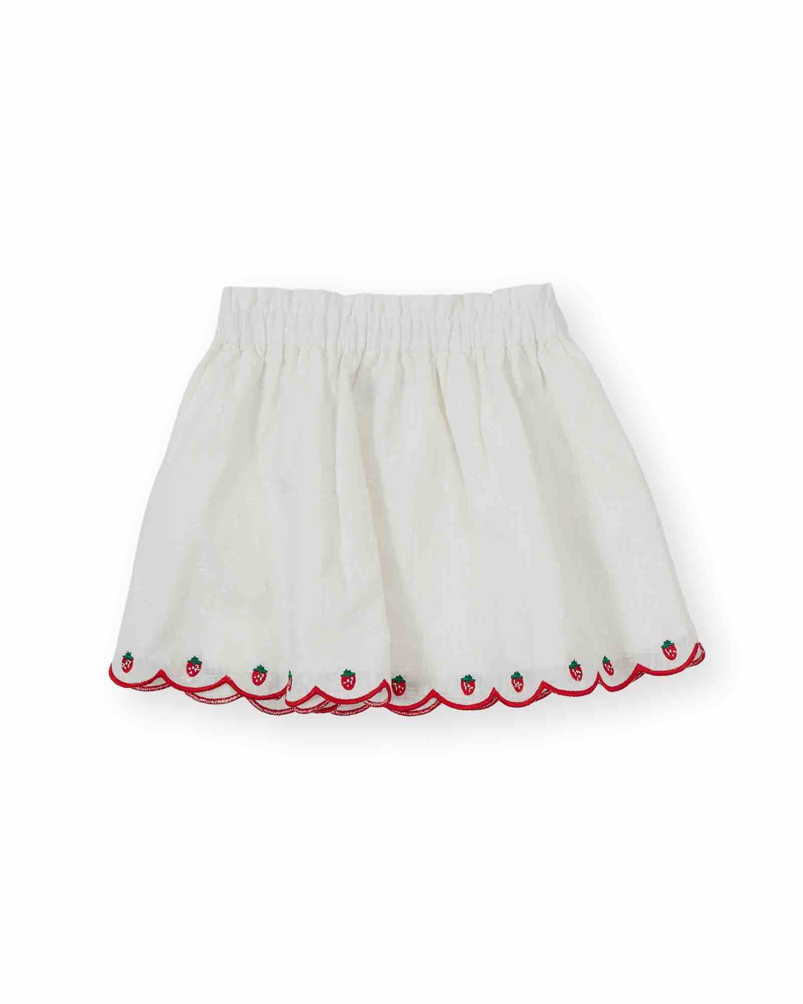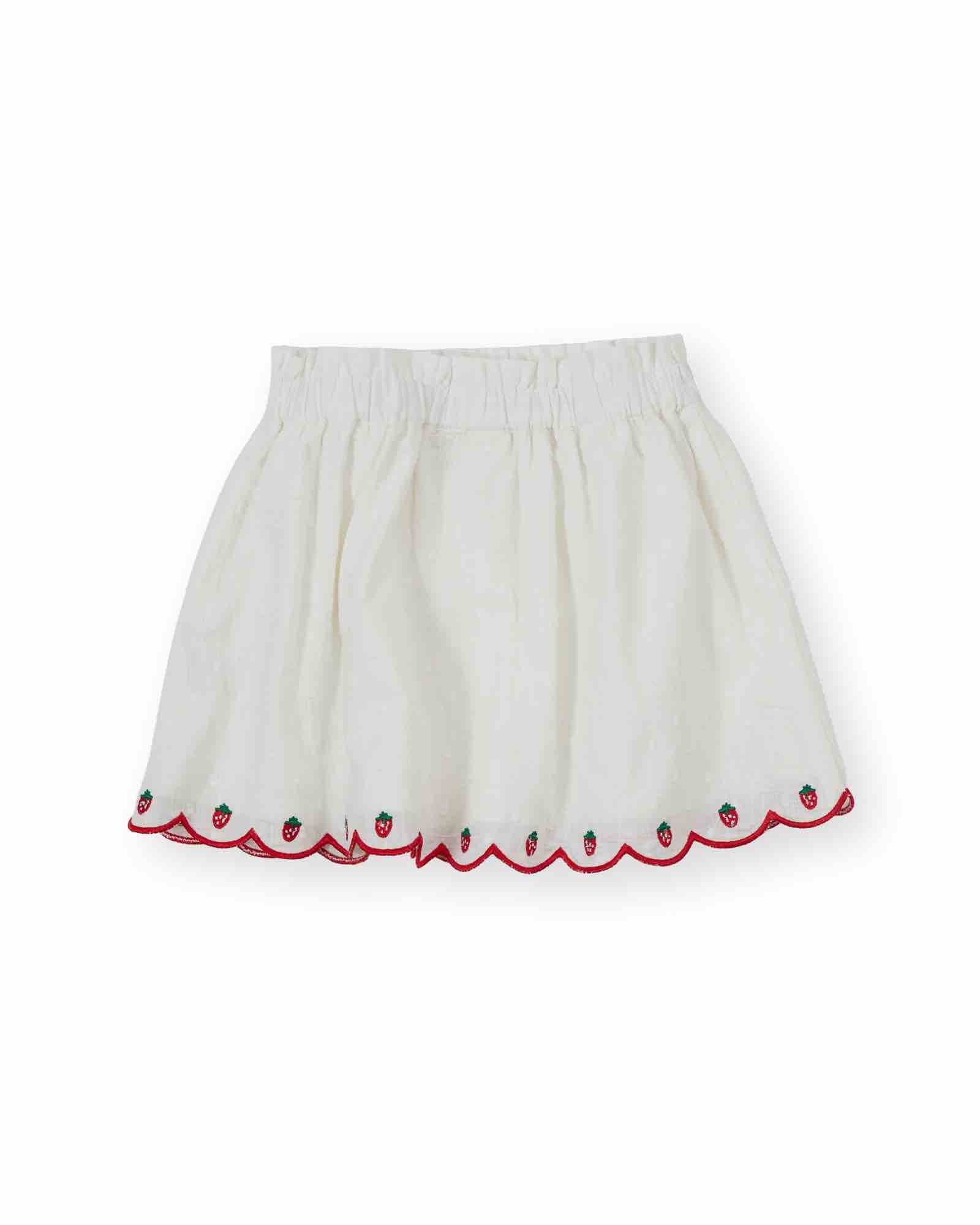 Goldie + Ace rok met geschulpte zoom en aardbeienmotief