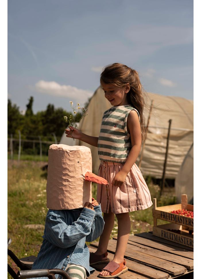 Sasha rok van Jenest is gemaakt van duurzaam geverfd katoen met strepen, heeft een knoopsluiting aan de voorkant en een elastische tailleband aan de achterkant voor een comfortabele en flexibele pasvorm.