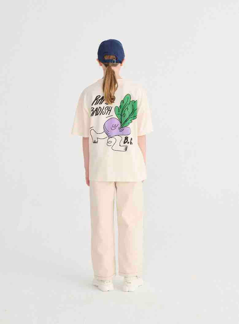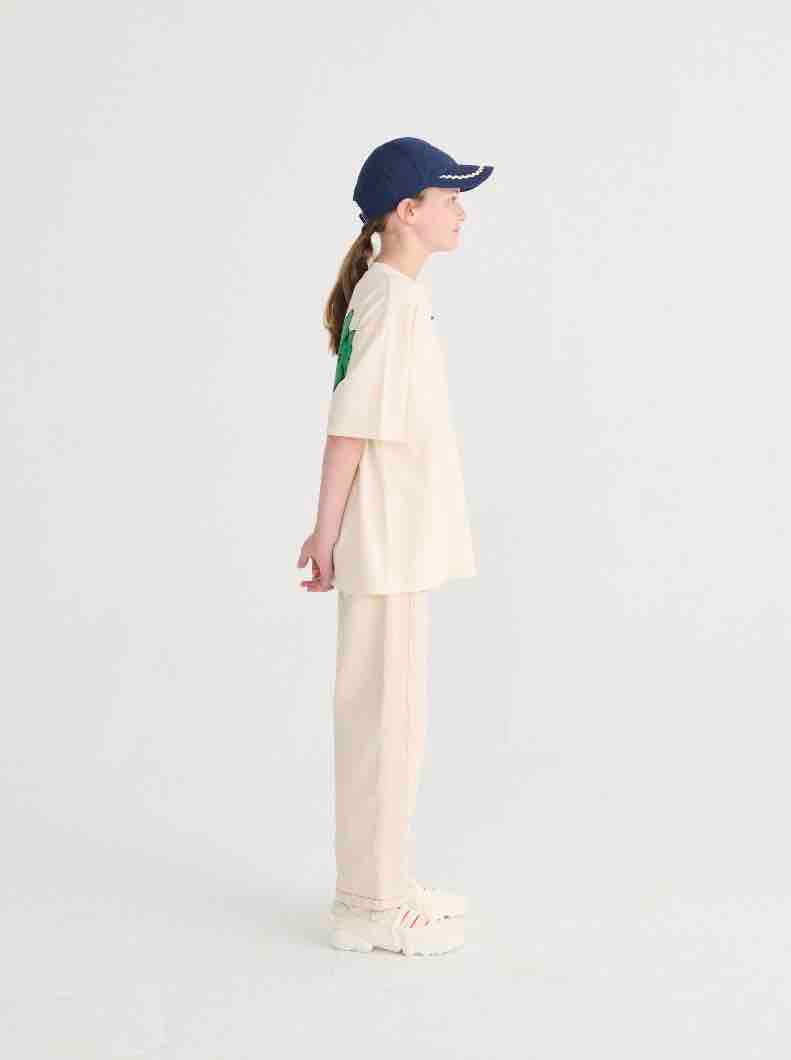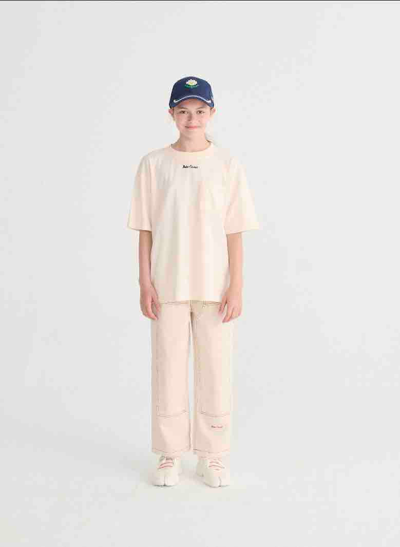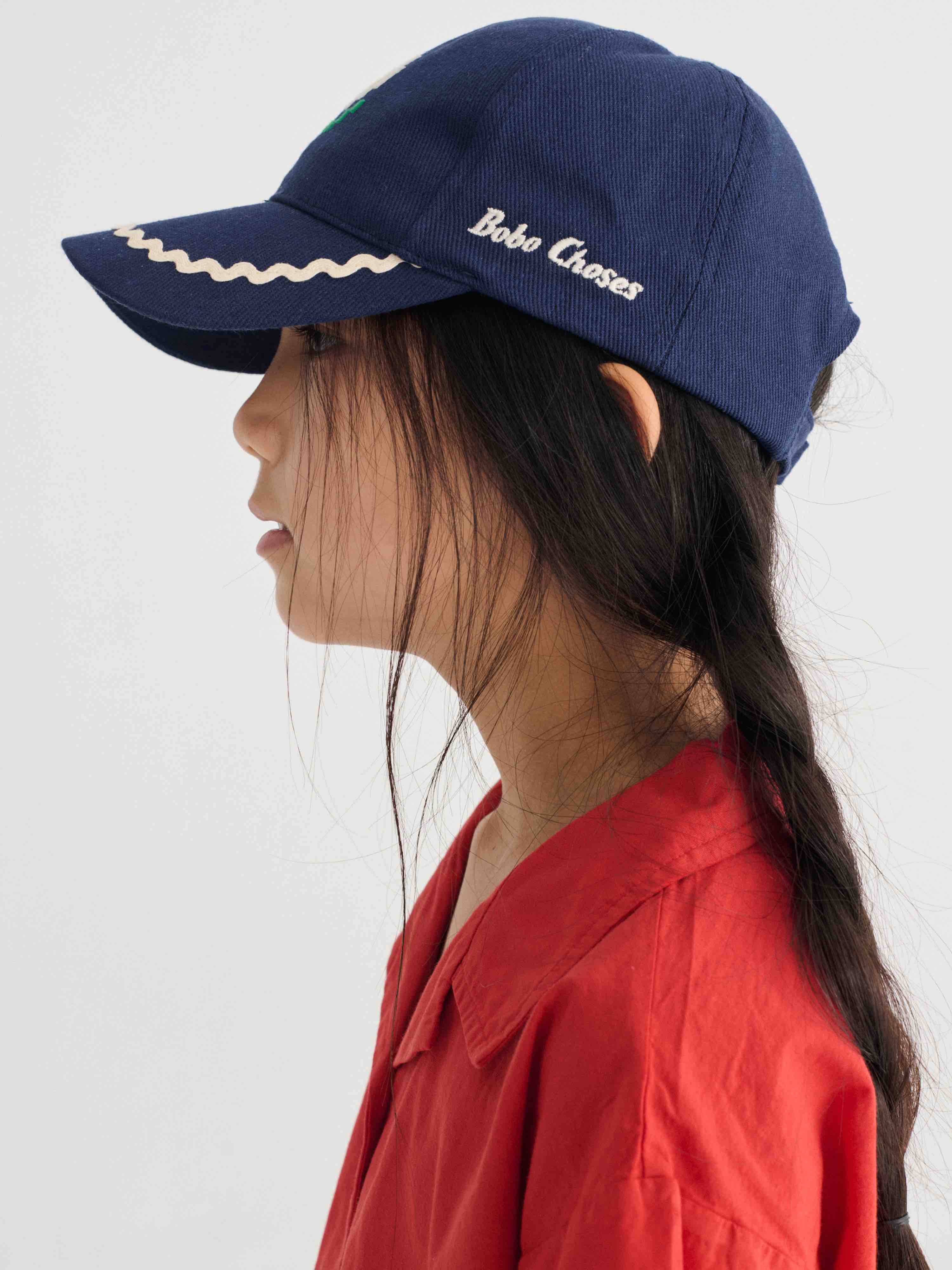 Bobo kiest voor een pet van keperstof met pixel- en madeliefjesmotief.