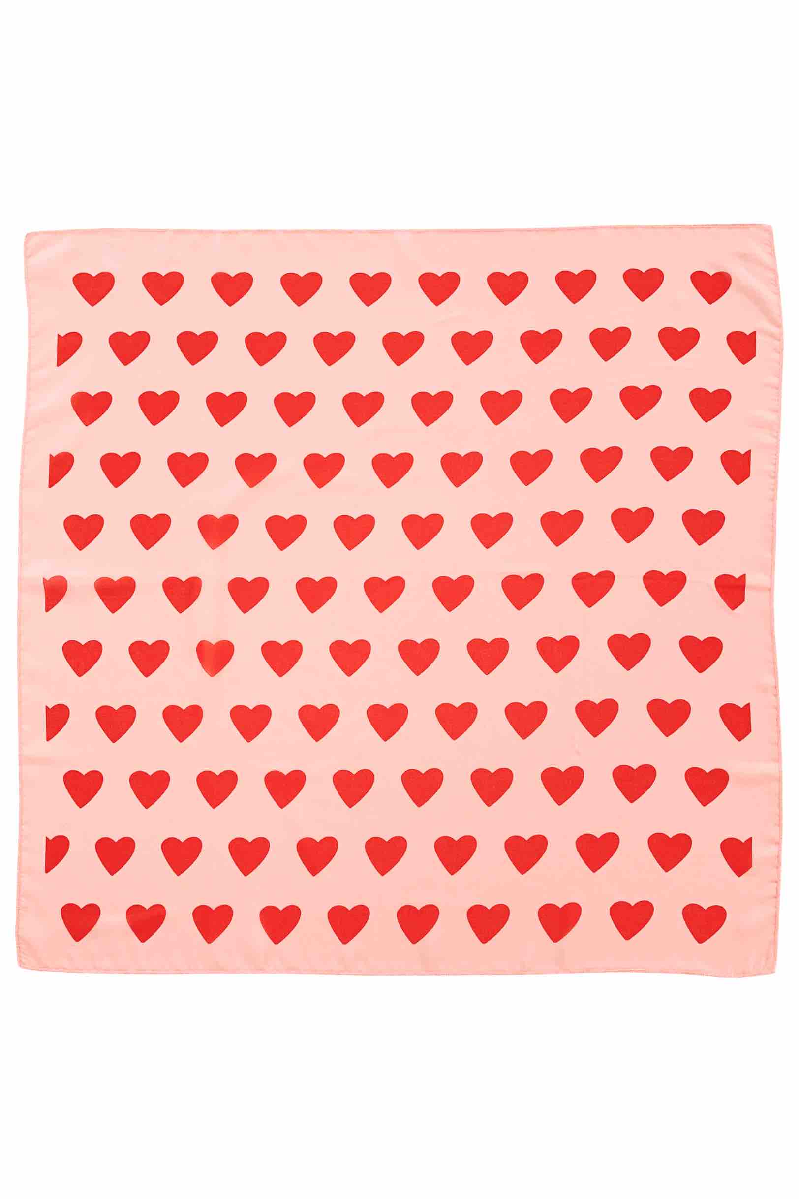 Zijdezachte bandana met all over hartjesprint van Piupiuchick. Heel leuk om te combineren met items uit de SS26 collectie van Piupiuchick.