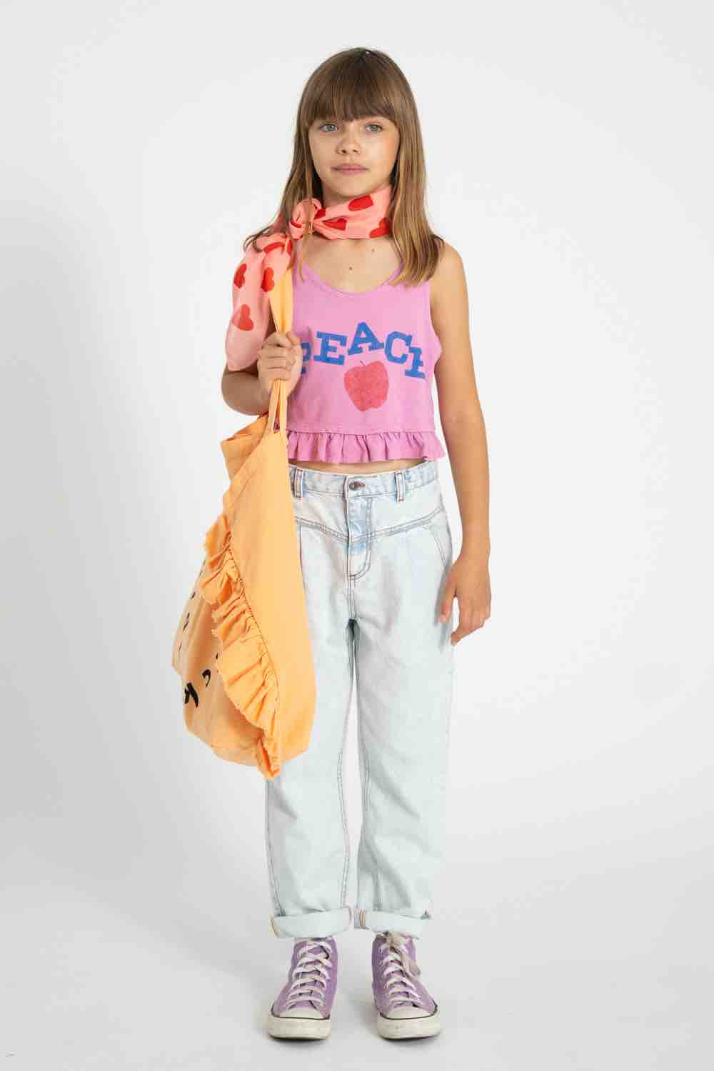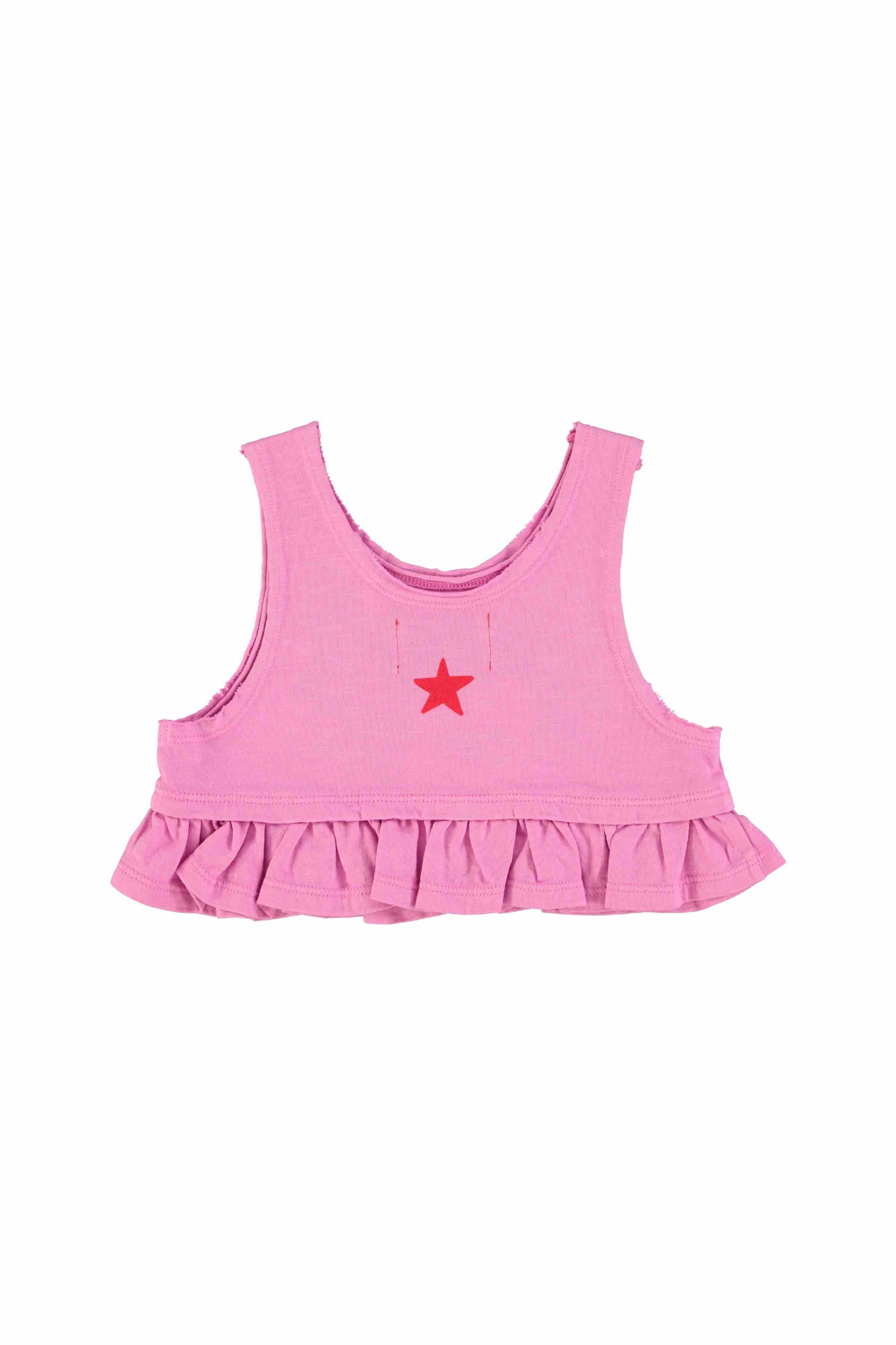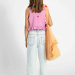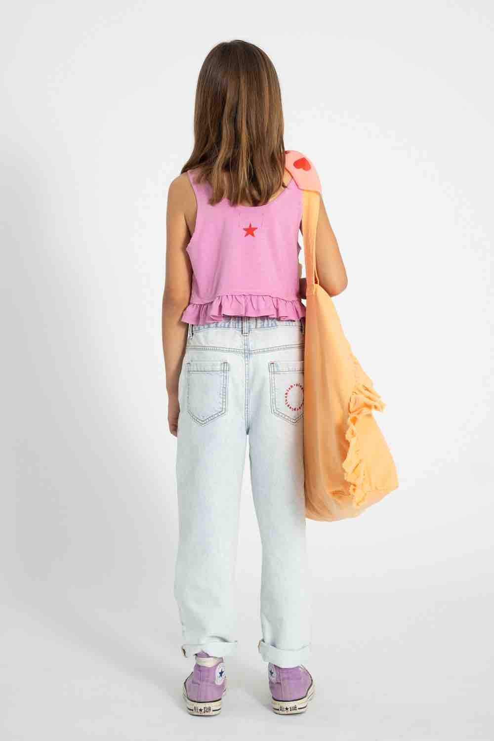 Zomerse top met rushes aan de onderkant en "Peace" op de voorkant van Piupiuchick.