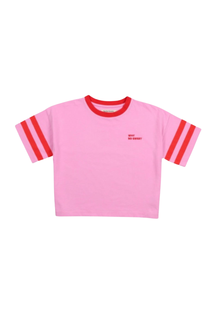 Het nieuwe Society Cana T-shirt in roze en lavendelkleur.