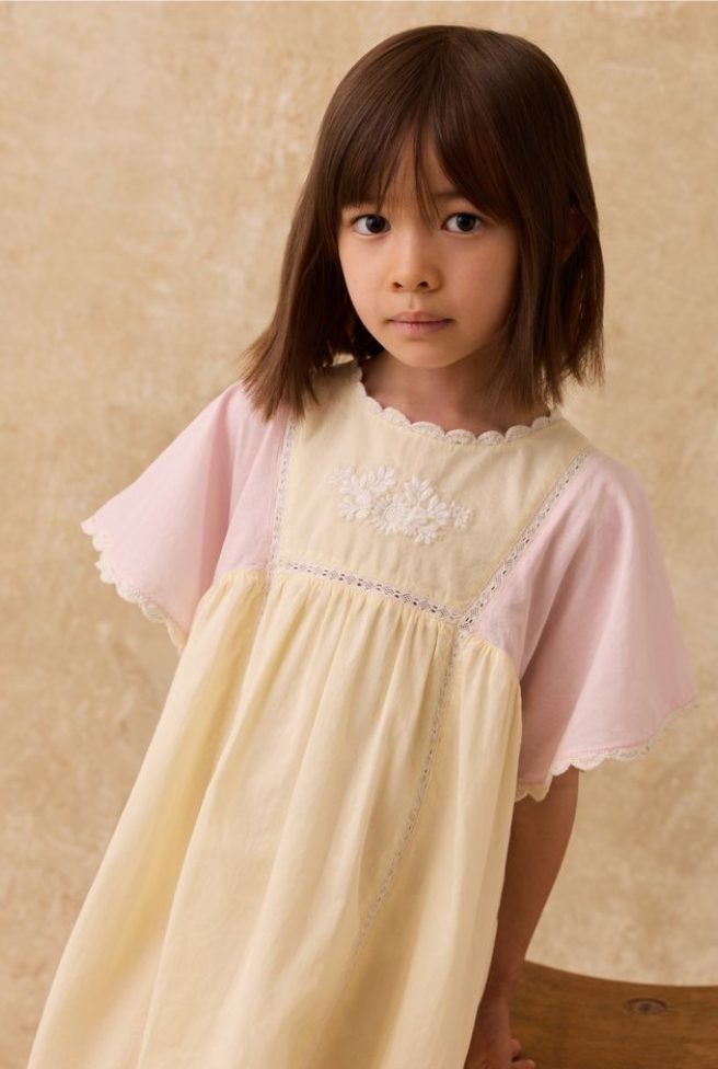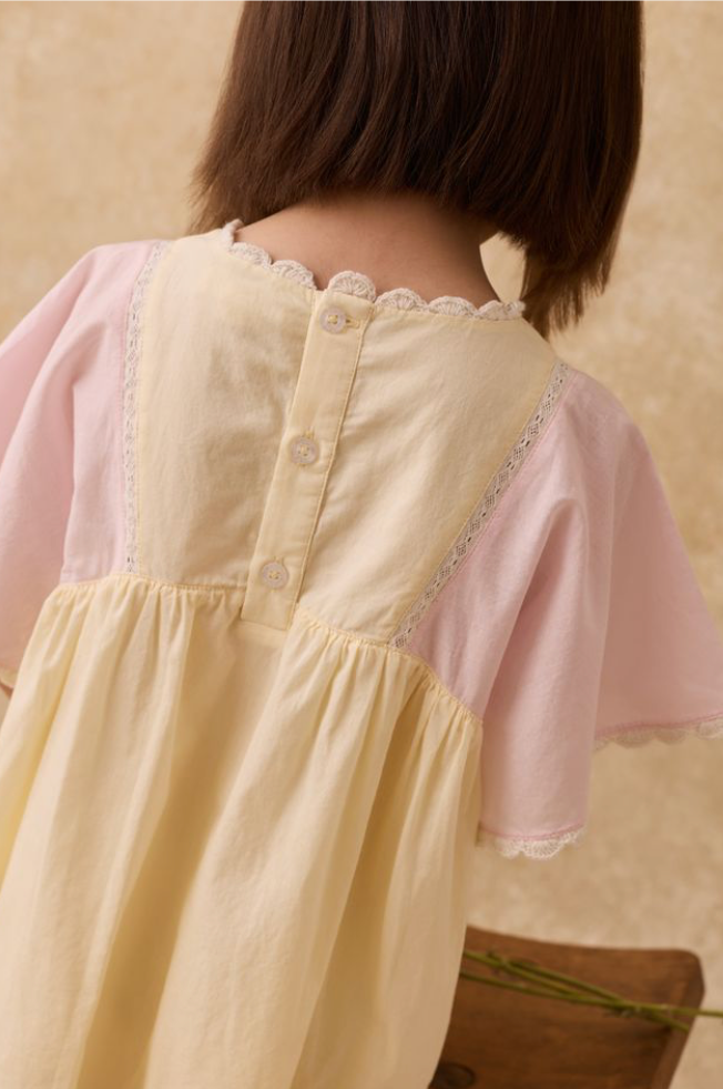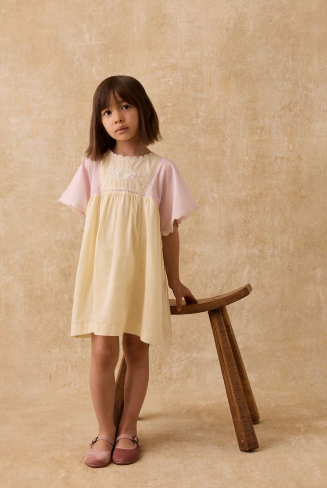Louise Misha jurk Aurora Cambric roze en geel