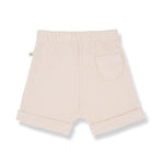 Zacht shortje Telos met trekkoord in een zomerse bloesem roze kleur van One More in the Family. Het lieve babybroekje heeft een zakje achterop.